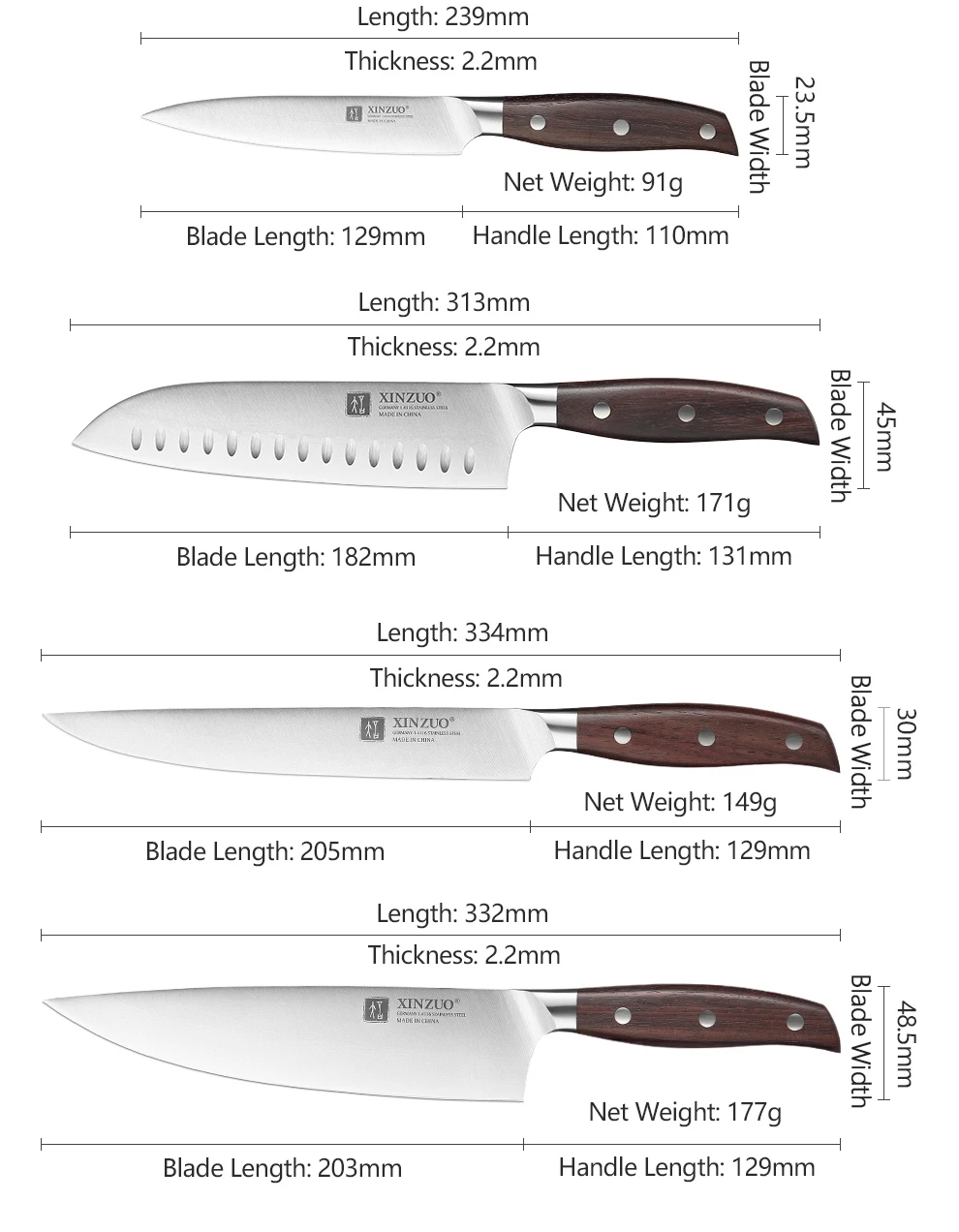 Набор ножей из нержавеющей стали серии XINZUO Zhi 7 шт.