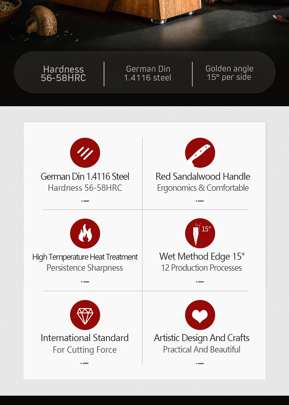 Материал ручки:Высокое Качество ПремиумКрасное сандаловое дерево
