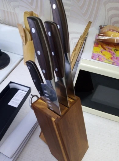 Ребята,вот это качество!!!!Пришло все в срок,правда ножи отдельно,а подставка двумя днями позже,мы брали на подарок,и подарить не стыдно, качество супер!!!!ножи из качественного материала,очень очень довольны!!!!Спасибо продавцу!!!