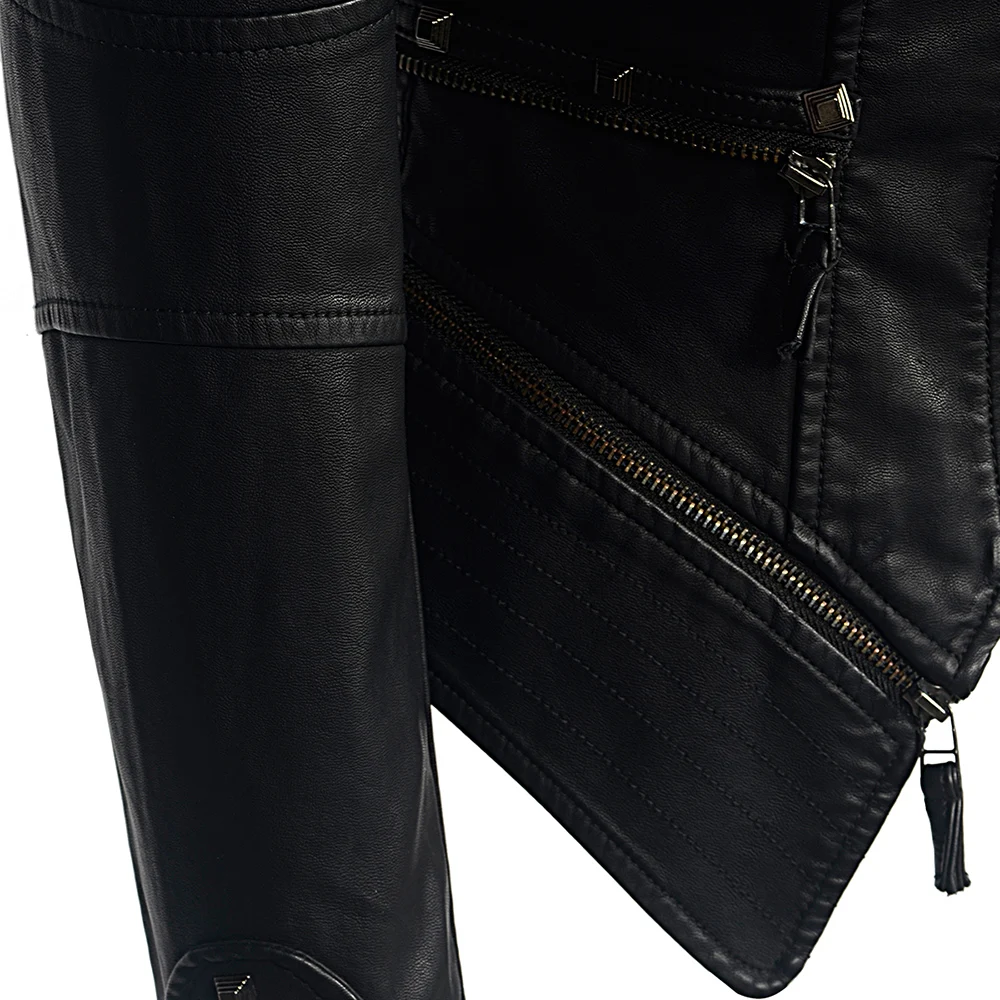 Куртка женская из гладкой искусственной кожи, модный Байкерский жакет с длинным рукавом, уличная одежда, черный розовый цвет, Осень-зима