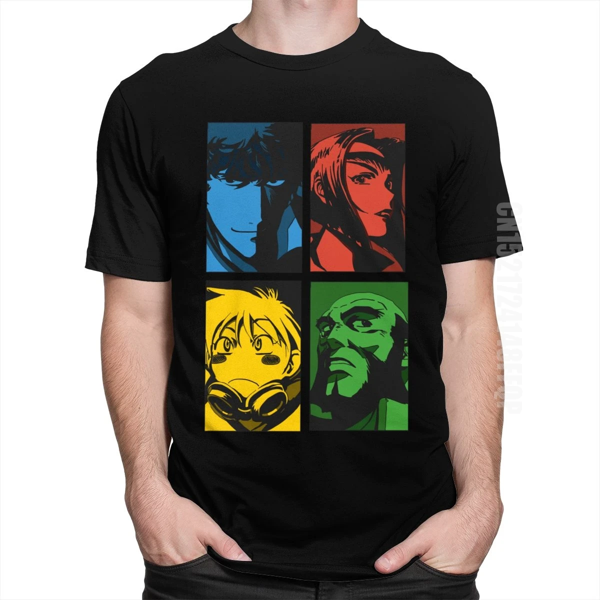 Футболка мужская в стиле 90-х, Повседневная рубашка с круглым вырезом, из мягкого хлопка, приталенная, с рисунком аниме Cowboy Bebop, поклонник манги, подарок