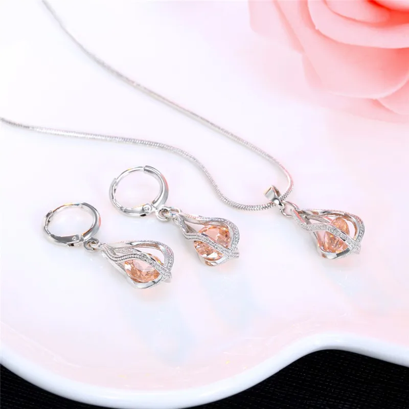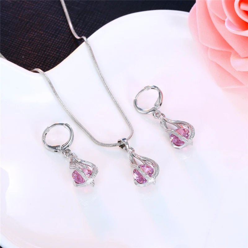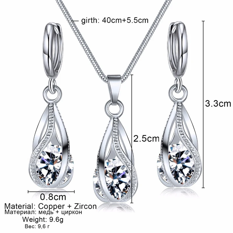 Женский комплект украшений, колье и серьги серебряного цвета с кубическим цирконием