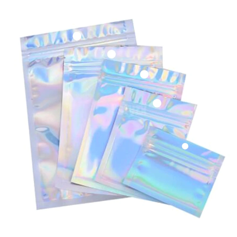 100 шт Косметические лазерный ziplock мешок самоуплотняющийся мешок для упаковки подарков на выбор голографические прозрачные мешок ювелирных изделий утолщенная алюминиевая фольга мешки замка застежка-молнии