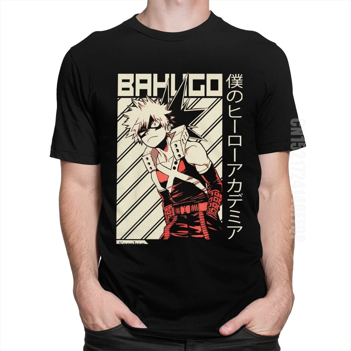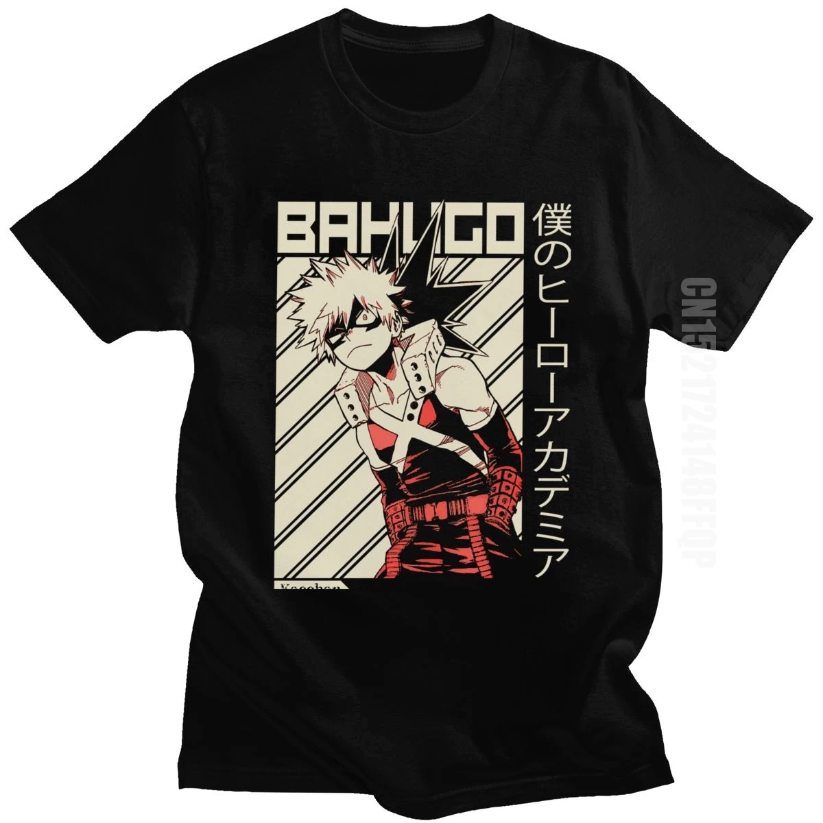 Новинка, Мужская футболка Boku с героями академии, Высококачественная футболка из чистого хлопка с круглым вырезом, Аниме Манга Katsuki Bakugo, футболка One For All