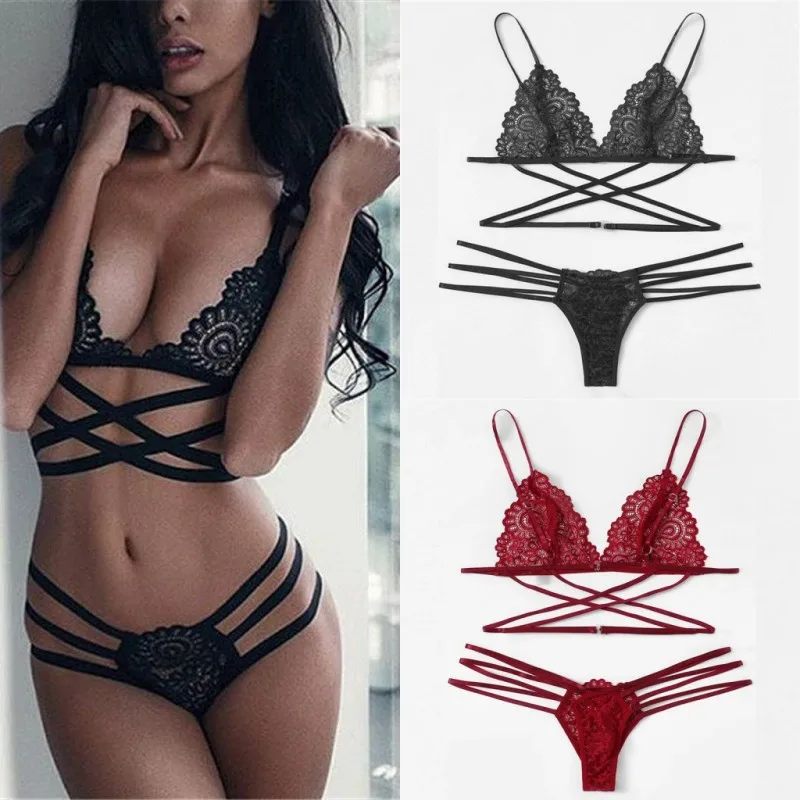 Женское Эротическое нижнее белье, прозрачный бюстгальтер + сексуальные стринги, соблазнительная кружевная Пижама