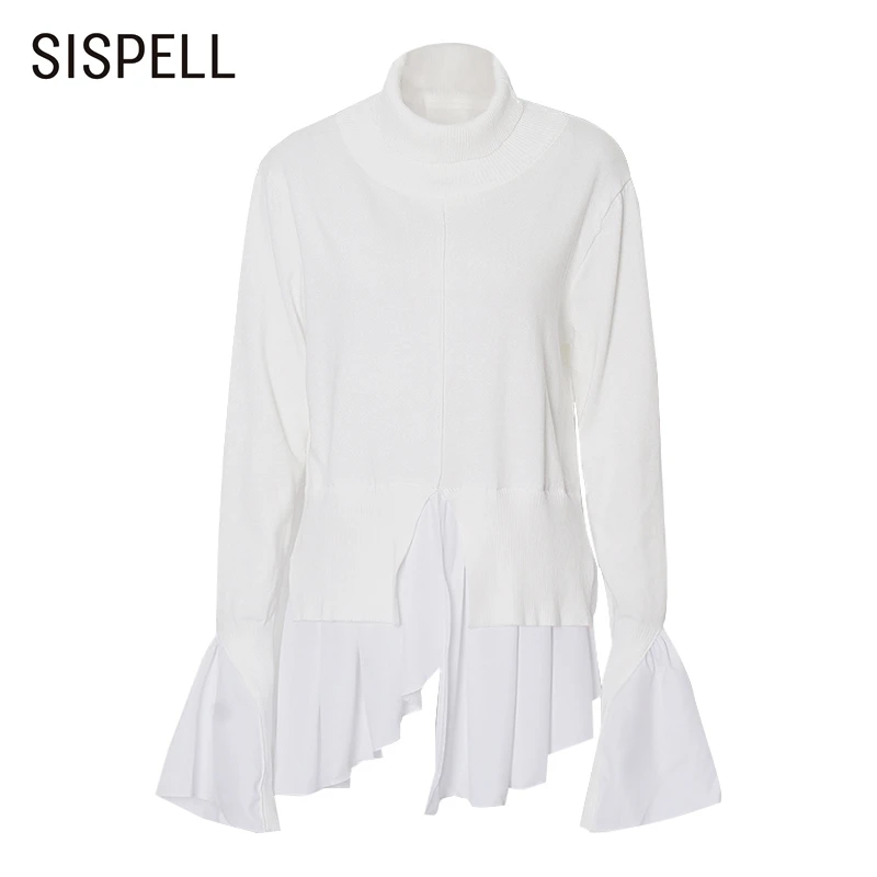 Женский пуловер с рюшами SISPELL, свитер с воротником-стойкой и длинными рукавами, осенняя мода 2020