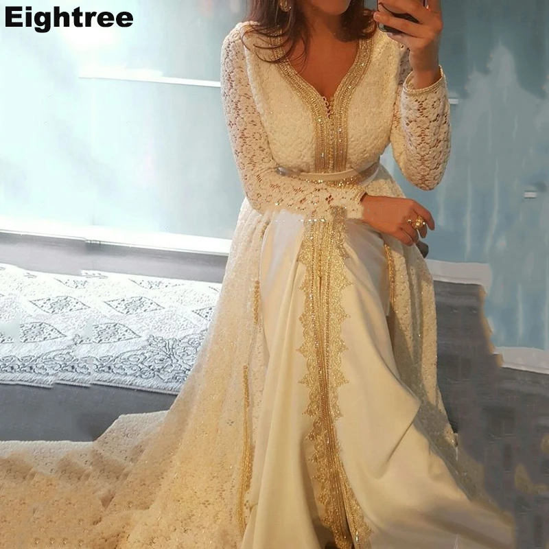 Кружевные марокканские вечерние платья-кафтан с золотыми аппликациями, Платья для особых случаев, арабские мусульманские Длинные вечерние платья