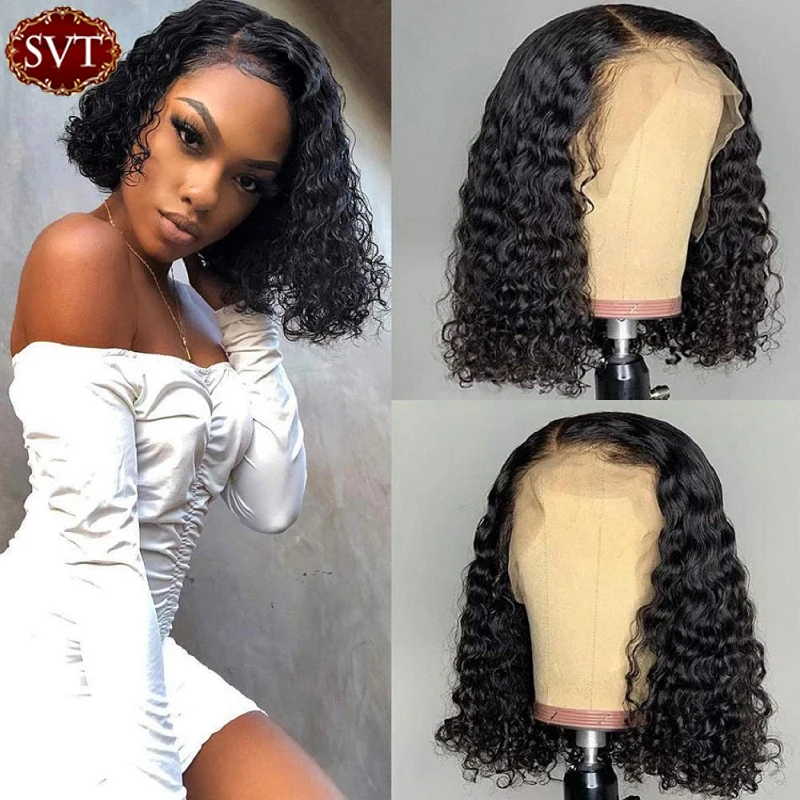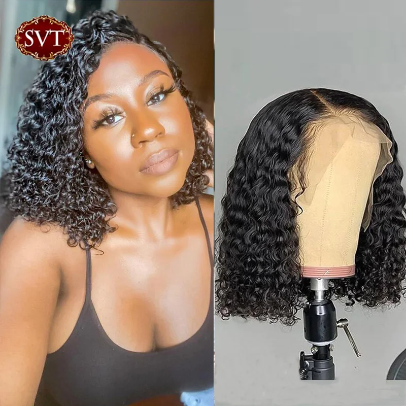 Женский парик с прямыми волосами SVT, индийский парик с глубокой волной, с короткими волосами, 4x4, для чернокожих женщин