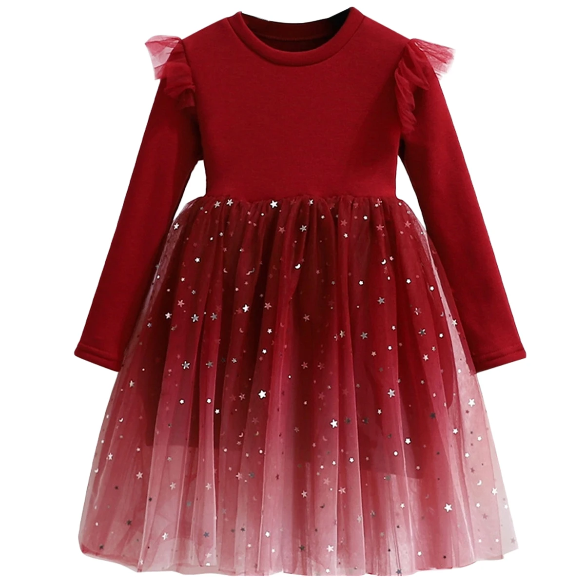 Зимнее блестящее платье принцессы для девочек с длинными рукавами и блестками, хлопковые рождественские платья для девочек на день рождения, детская повседневная одежда, ткань