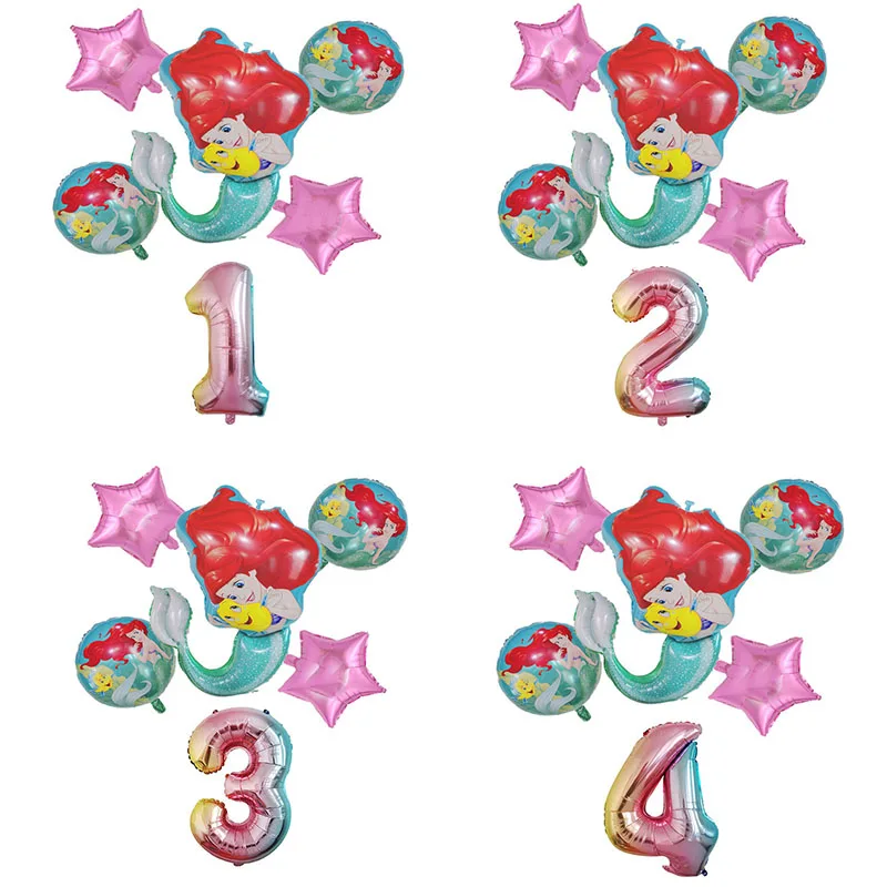 Маленькая Русалочка для девочек, украшение для дня рождения, мультяшная Русалочка Ариэль, принцесса, одноразовая посуда, набор бумажный стаканчик, тарелка соломинки