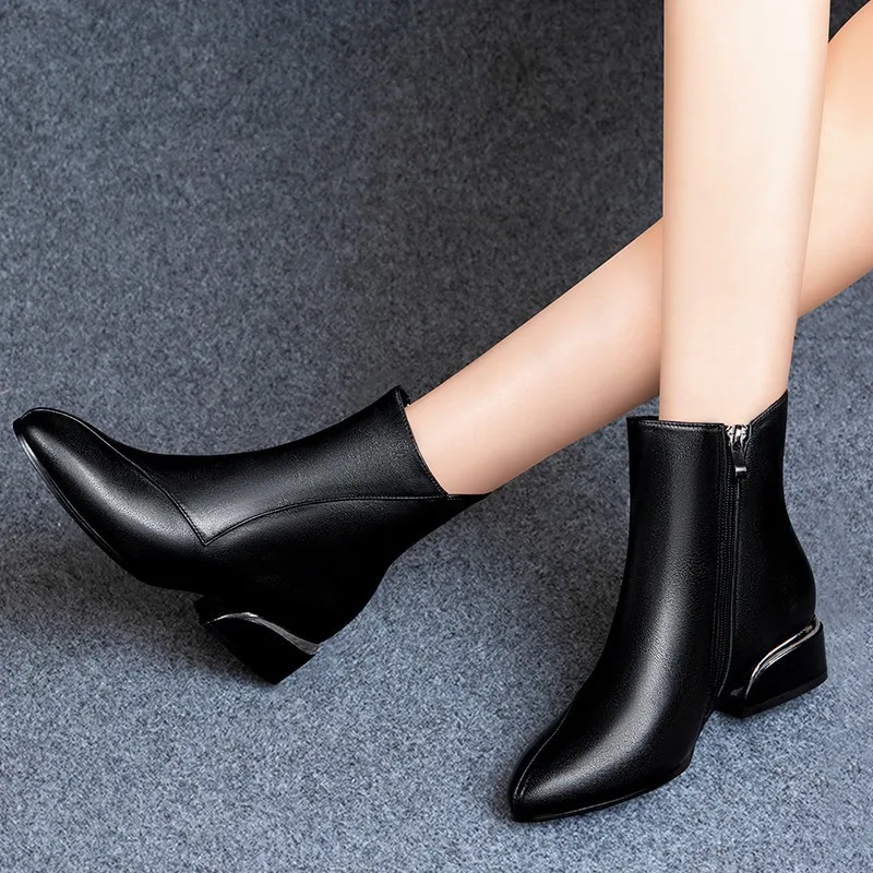 Ботинки женские зимние кожаные, с острым носком, на платформе и каблуке, с вельветовым покрытием, 2020