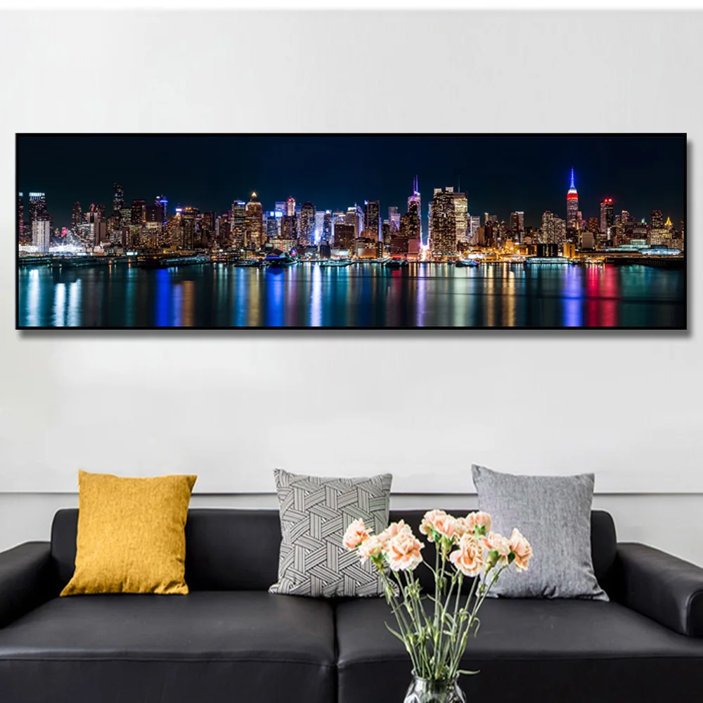 Современные небоскребы, Ночной пейзаж Нью-Йорка, настенный плакат и фотокартина для украшения гостиной