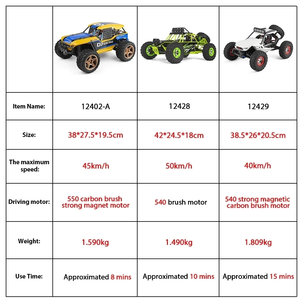 Машинка с дистанционным управлением WLtoys 12402a 12428 12429 1:12, радиоуправляемая, высокоскоростная, 4WD, для езды по бездорожью, дрифта, 50 кмч