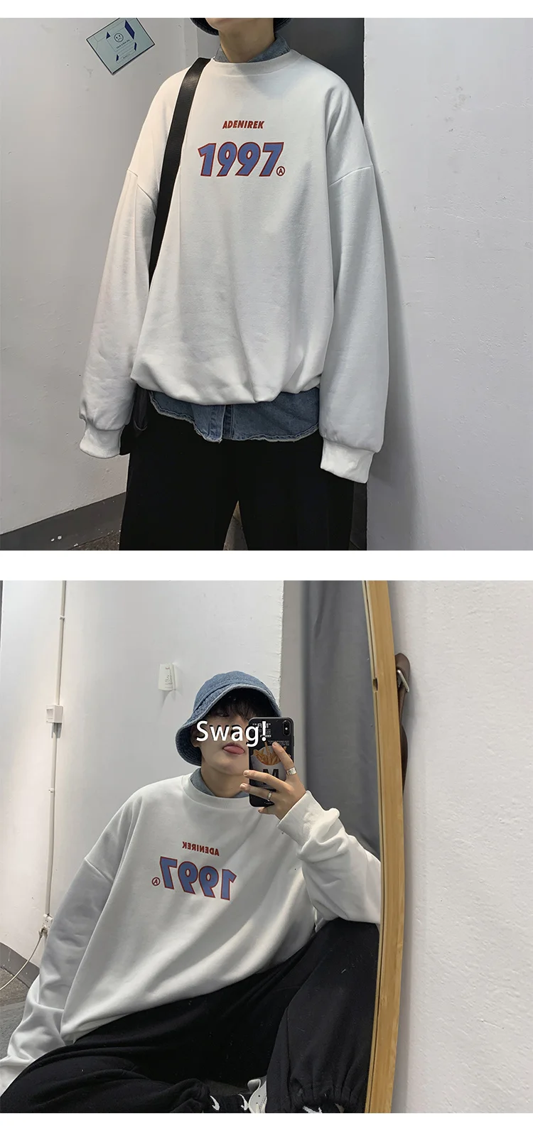 Кофта Мужская Neploha, с буквенным принтом, осень 1997, повседневная, с круглым вырезом, мешковатая, топы большого размера, Мужская одежда, 2020