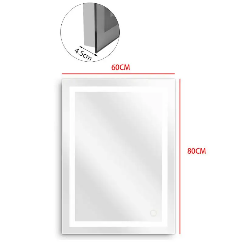 Особенности:-100% новый и высокое качество-Светодиодный настенный зеркальный светильник для ванной комнаты с подсветкой, косметическое зеркало с сенсорной кнопкой-Светодиодный зеркало с сенсорной кнопкой-Простота установки.-Алюминиевая рама с влагостойкой полосой-Светодиодный лак для зеркала, влагостойкийХарактеристики:Тип фитинга: настенныйМатериал оправы: алюминийОсвещение: светодиодныйРазмер: 500x700 мм/600X800 мм