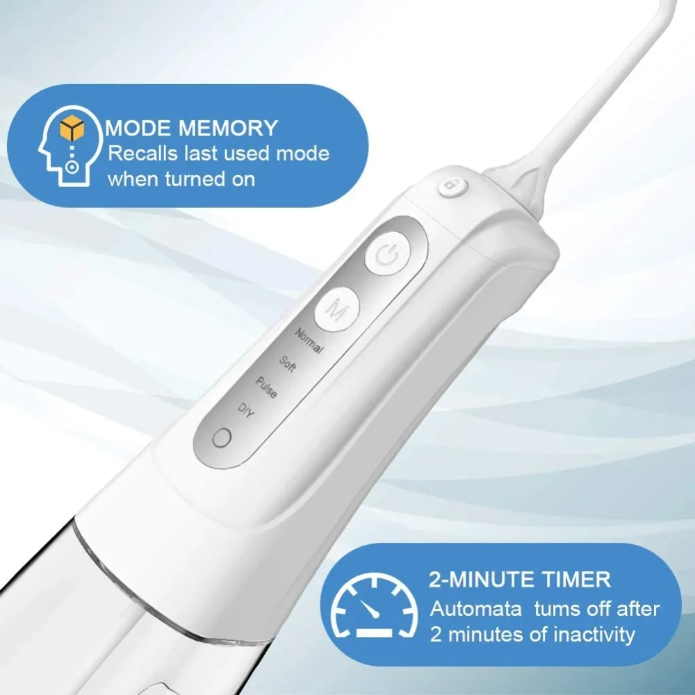 ОсобенностиЗубная вода Флоссер может удалять зубной налет и мусор между зубами и ниже линии гамлайн для глубокой и тщательной очистки. Обеспечивает легкий и эффективный способ поддержки правильного здоровья зубов и десен в домашних условиях. Этот ирригатор для полости рта также идеально подходит для всех с брекетами, имплантами, коронами или пародонтовыми карманами.3 режима очистки1. Нормальный (стандартный режим)2. Мягкий (щадящий режим)3. Пульс (режим массажа)4 рекомендации для удовлетворения ваших потребностей1 * скребок для языка3 * Стандартные наконечникиРезервуар для воды большого объемаСъемный резервуар для воды объемом 220 мл с противоскользящей конструкцией, достаточно для чистки полости рта