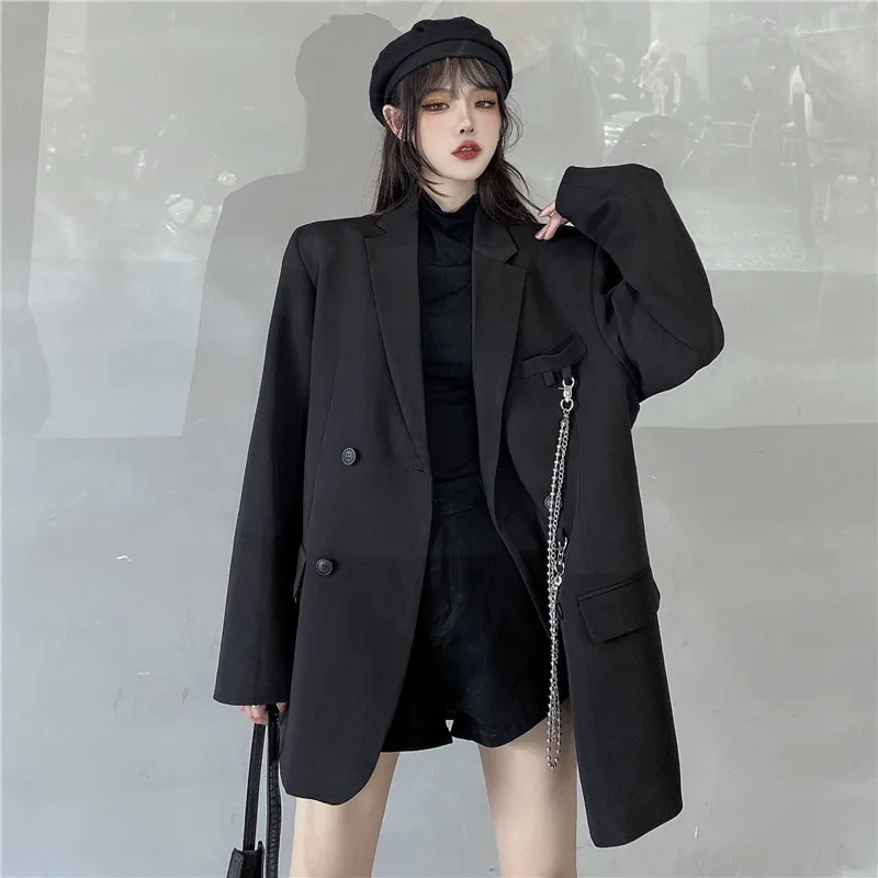 Женский двубортный блейзер в Корейском стиле, повседневный Свободный кардиган в стиле Харадзюку С Длинным Рукавом, Осень-зима
