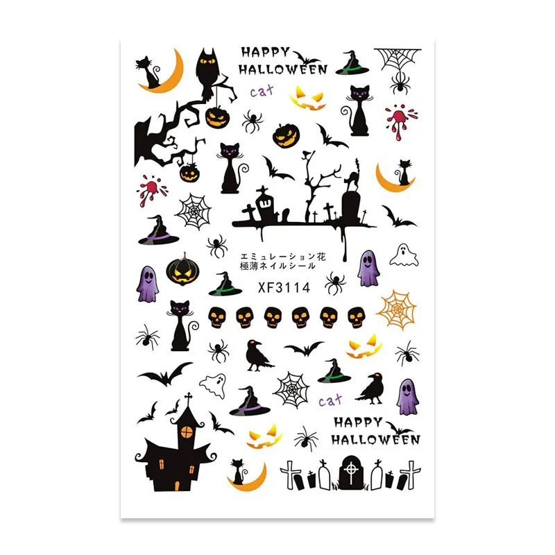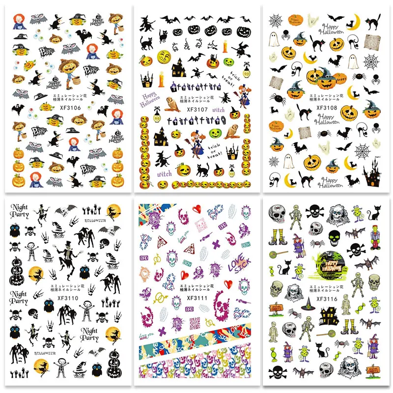 Наименование товара: смешанные наклейки для ногтей на ХэллоуинМатериал: бумагаОсобенности: Хэллоуин, наклейка для переноса воды, украшение для маникюра