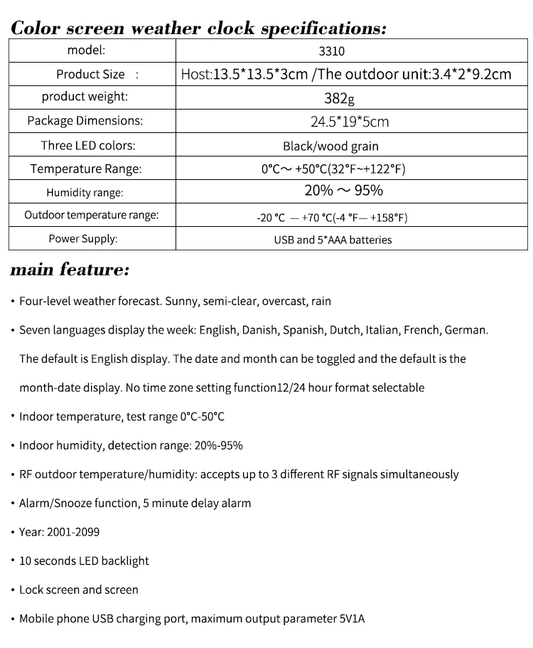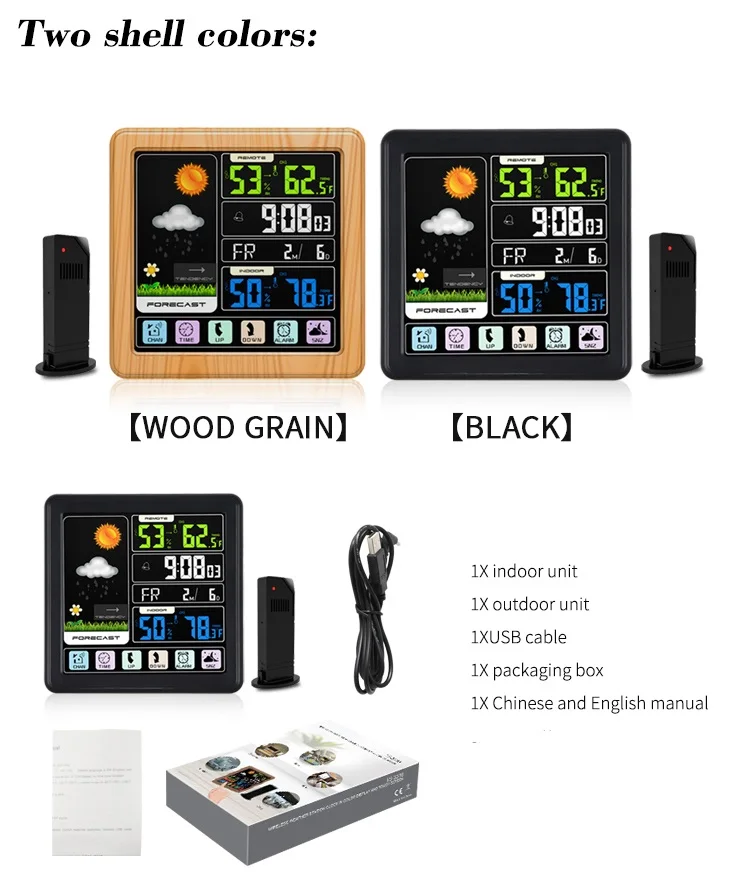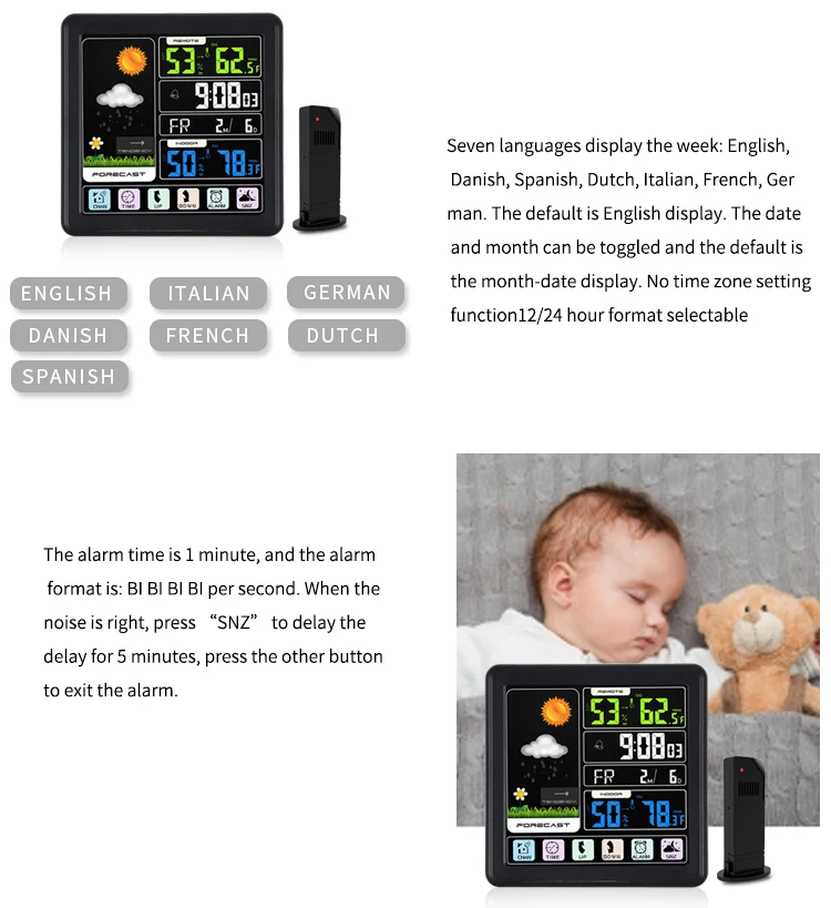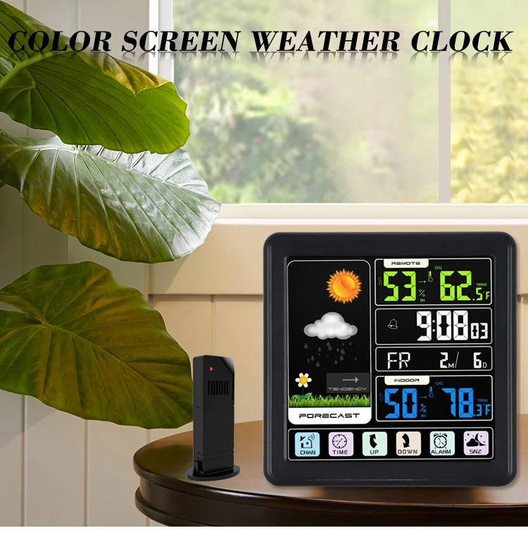 Беспроводная метеостанция, цифровой сенсорный ЖК-дисплей, датчик температуры и влажности, будильник, прогноз погоды