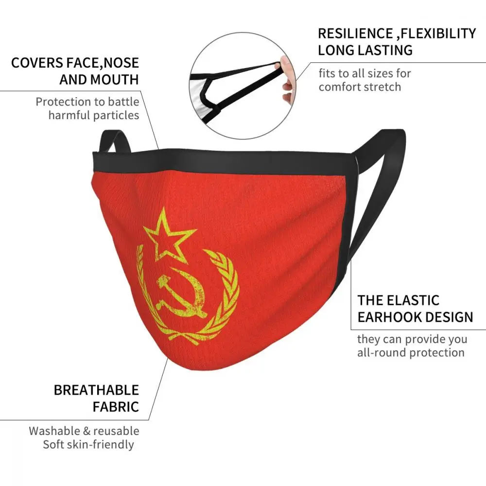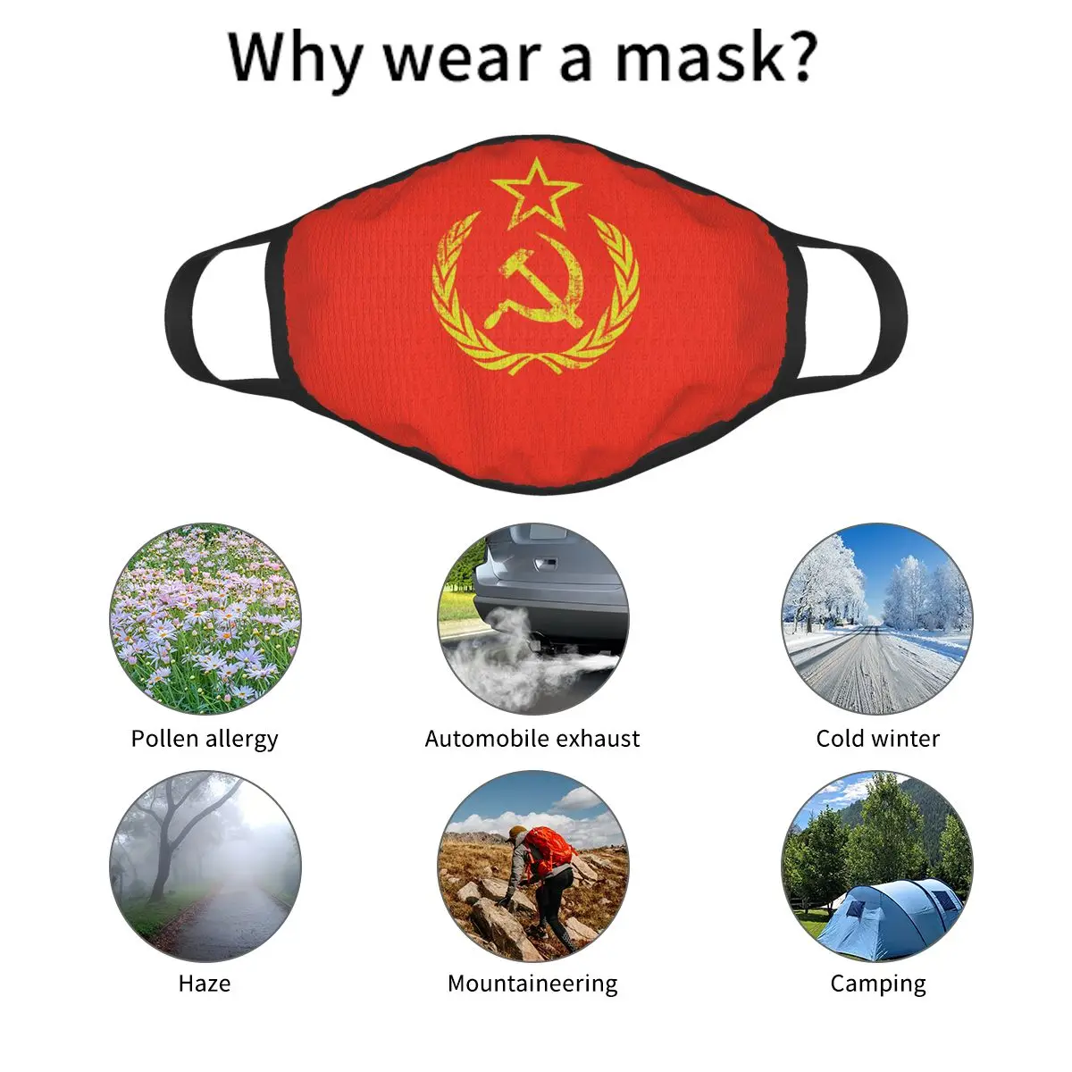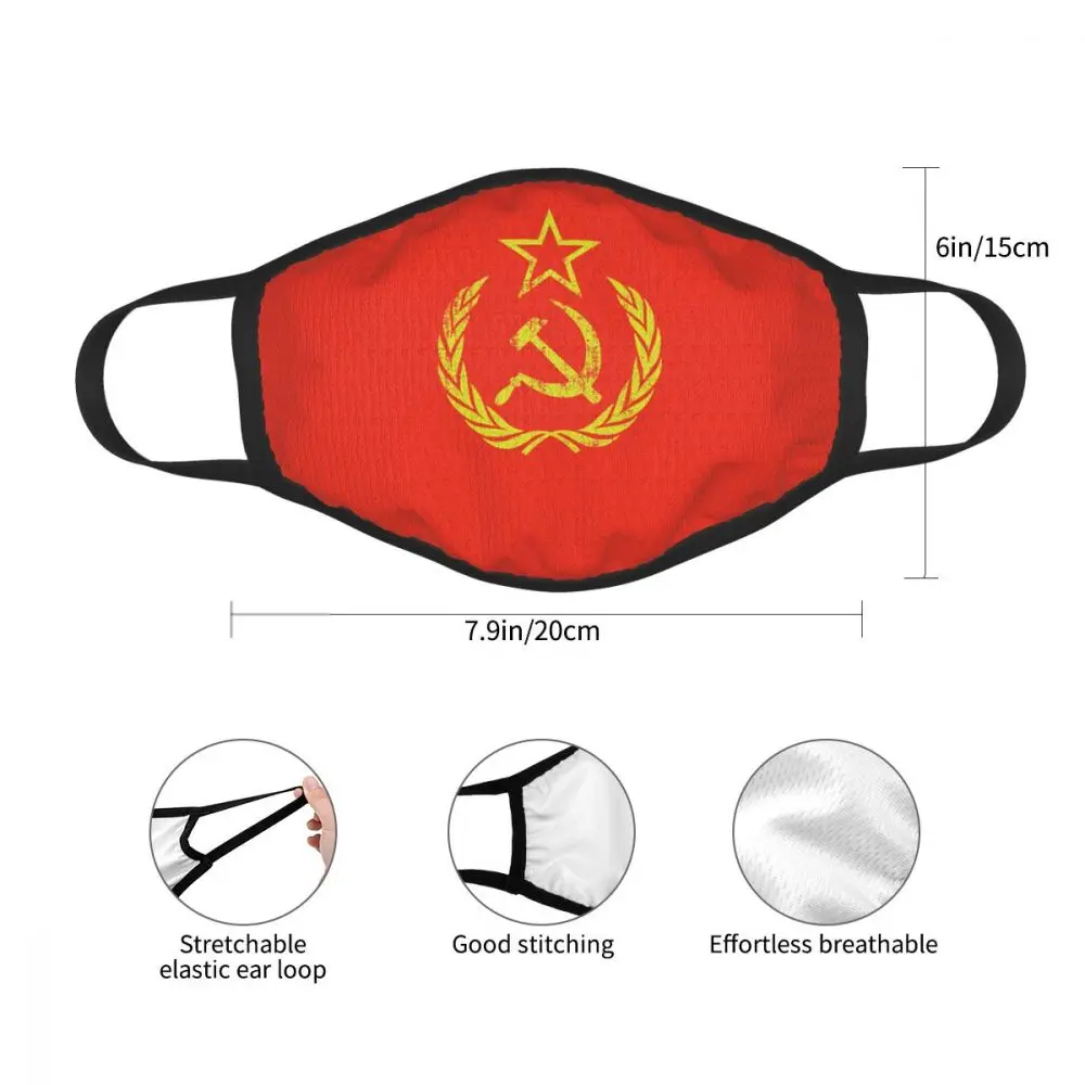 Маска многоразовая для лица с коммунистическим флагом серпом и молотом, Пылезащитная маска в стиле ретро против смога для коммунизма, марксизма, социализма, защитный респиратор