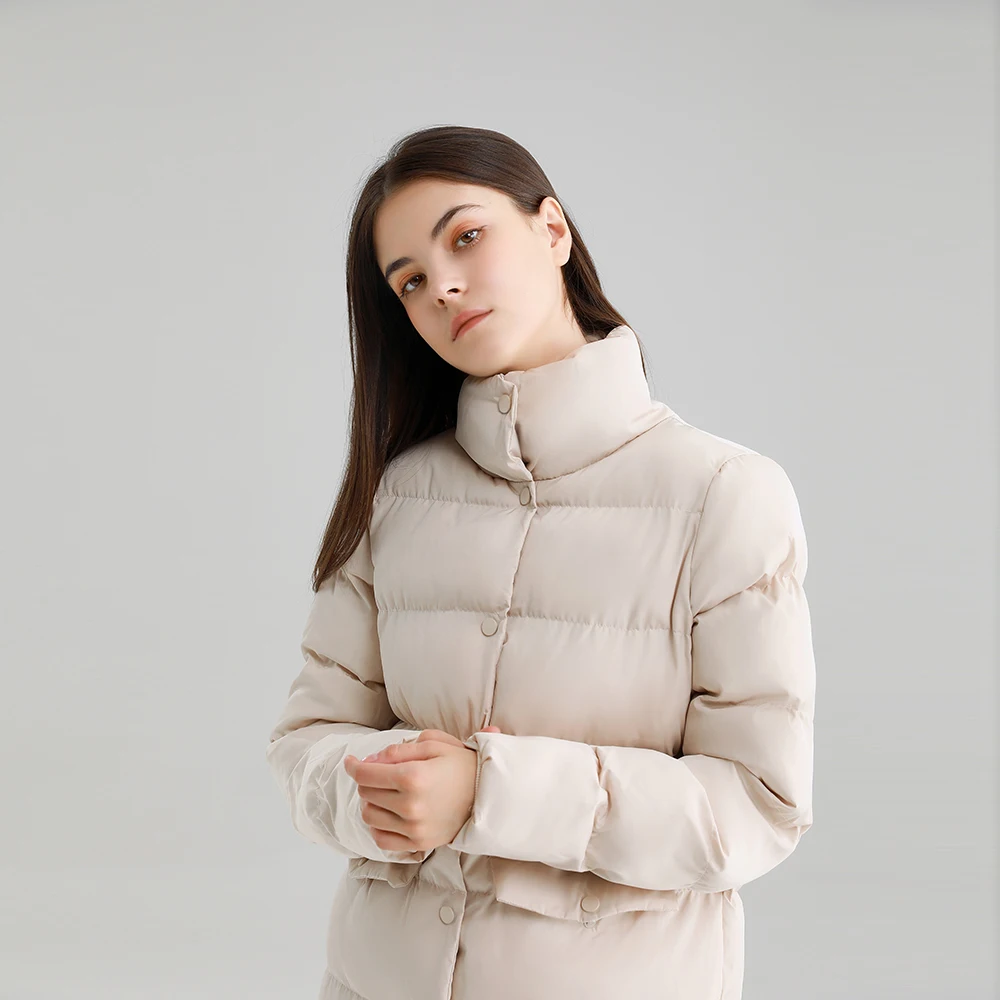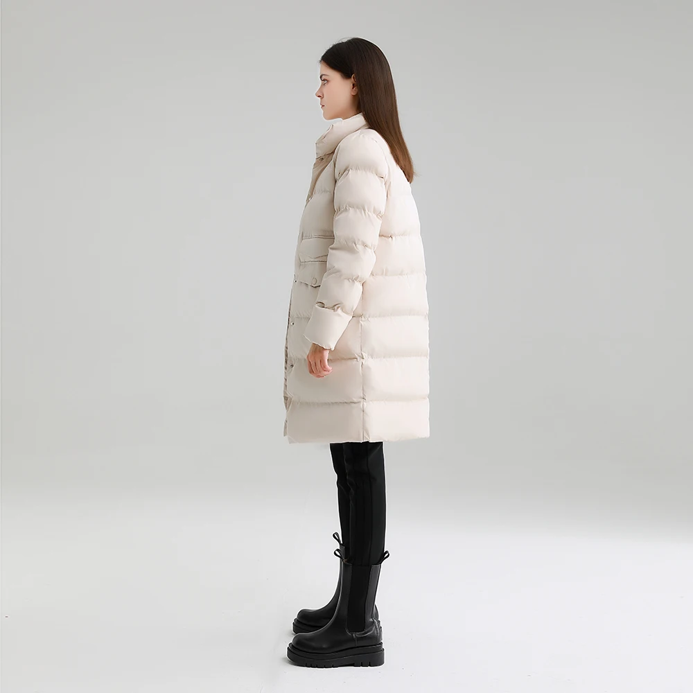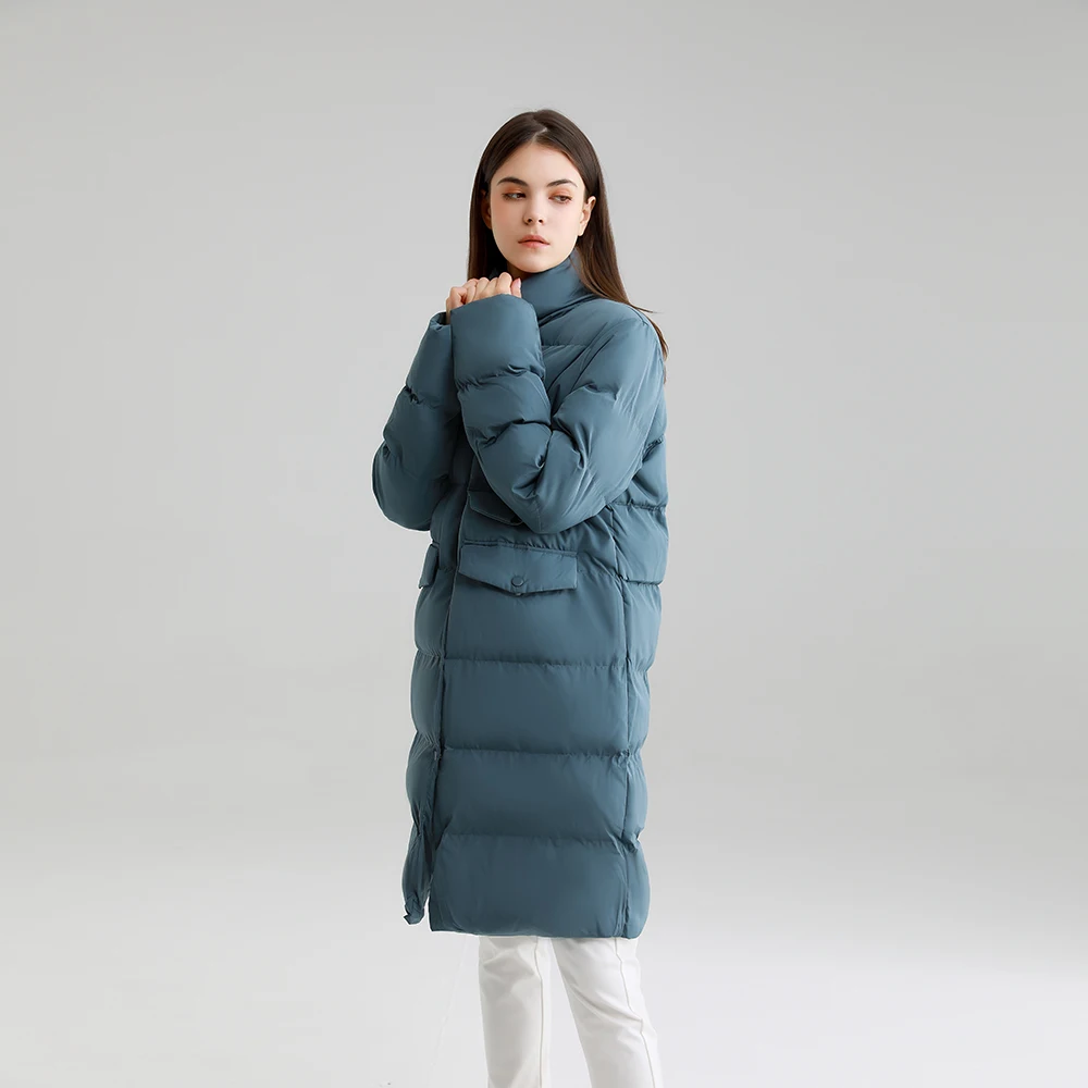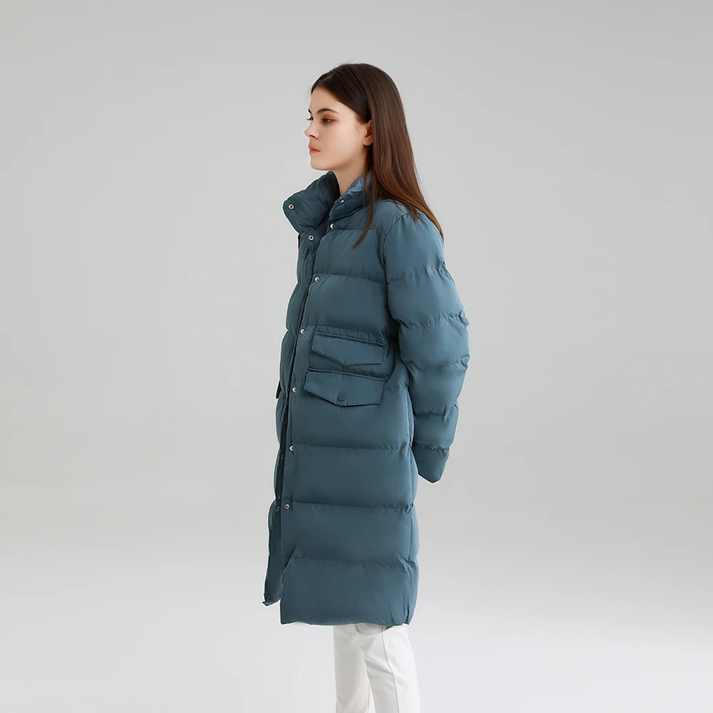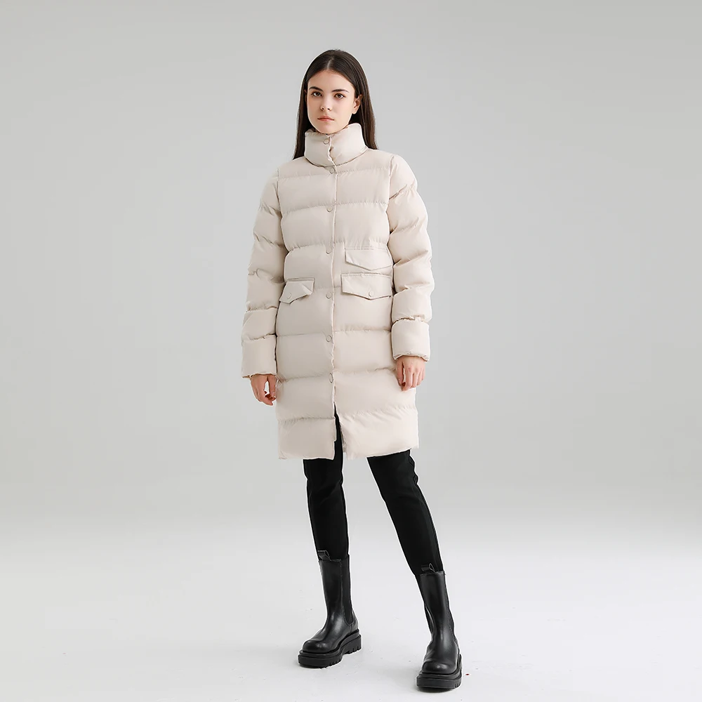 Пуховик женский зимний, длинный, на пуху, с карманами, 2021