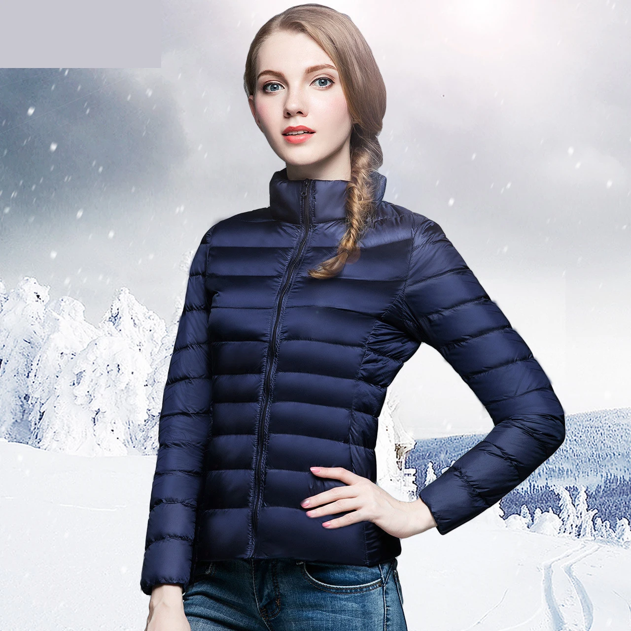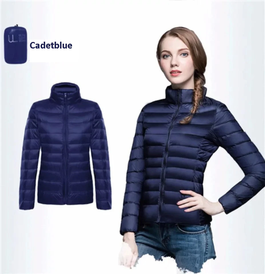 Женский пуховик с воротником-стойкой на осень и зиму, ультра-светильник, белый пуховик на утином пуху, теплое пальто, парка, Женская однотонная портативная верхняя одежда