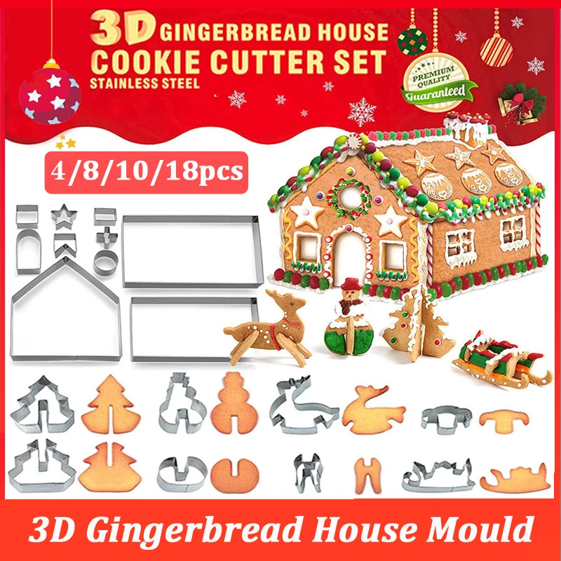 Рождественский пряничный домик Набор форм для печенья 3D из нержаве...