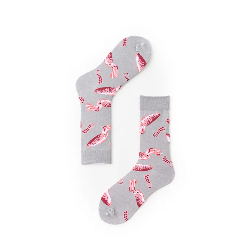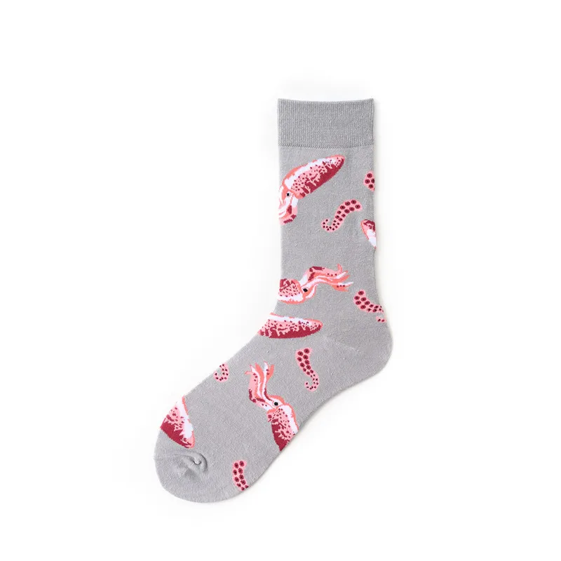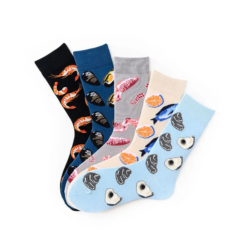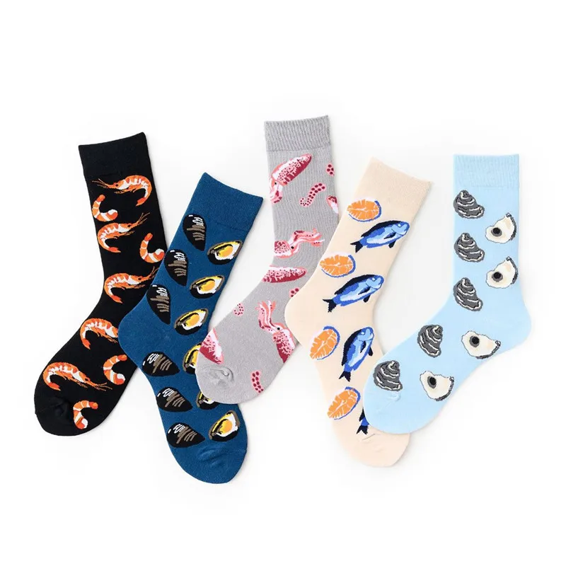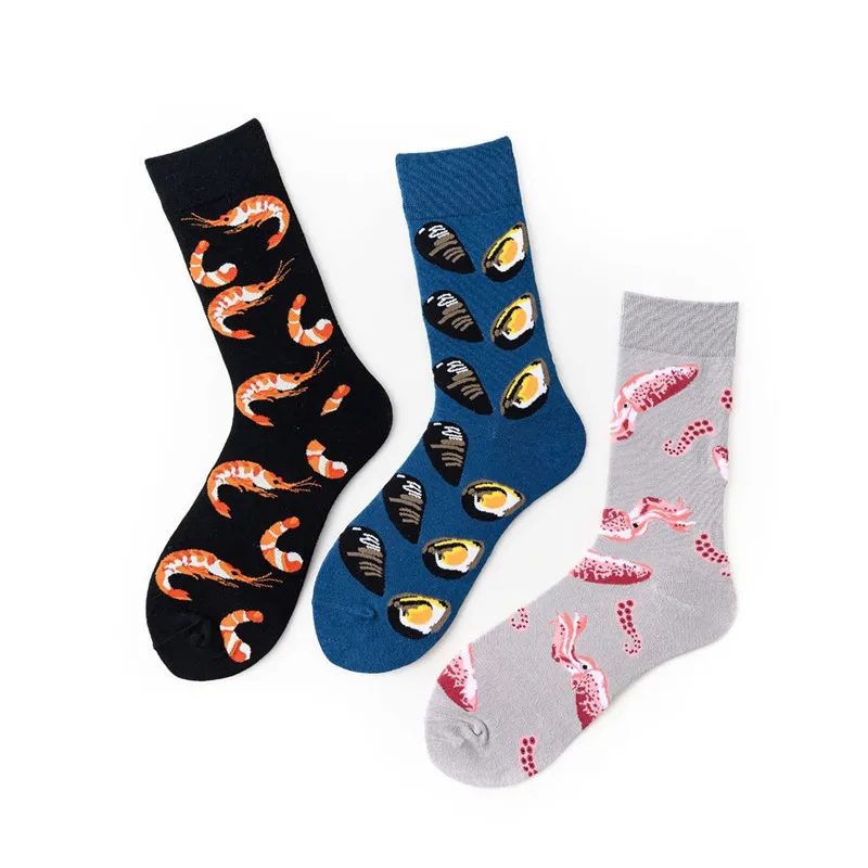 Мужские и женские зимние трикотажные длинные носки до середины икры с забавным принтом креветок устриц в стиле хип-хоп модная искусственная одежда для скейтборда