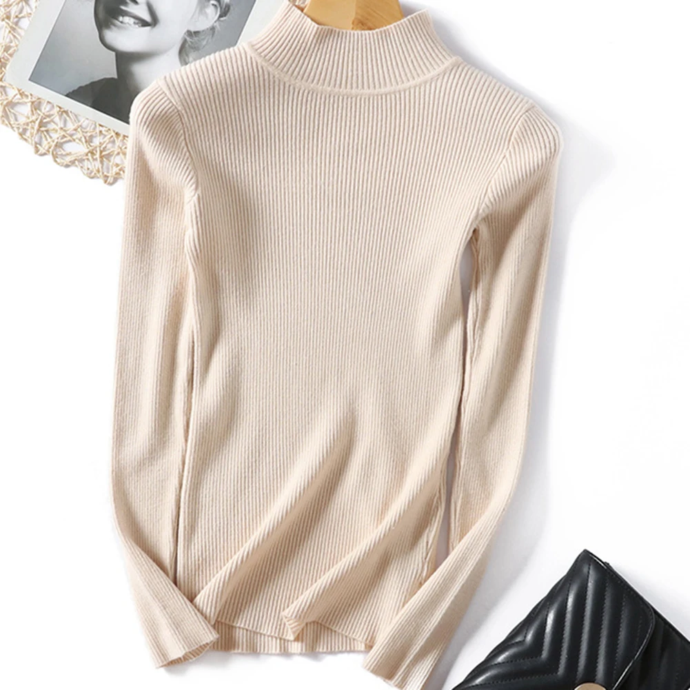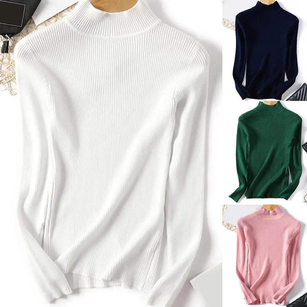 Свитер осенне-зимние женские топы облегающие водолазки вязаные эластичные Новые Топы с высоким воротником пуловеры
