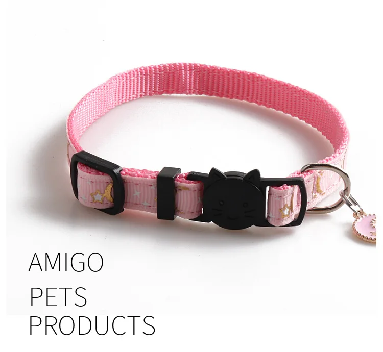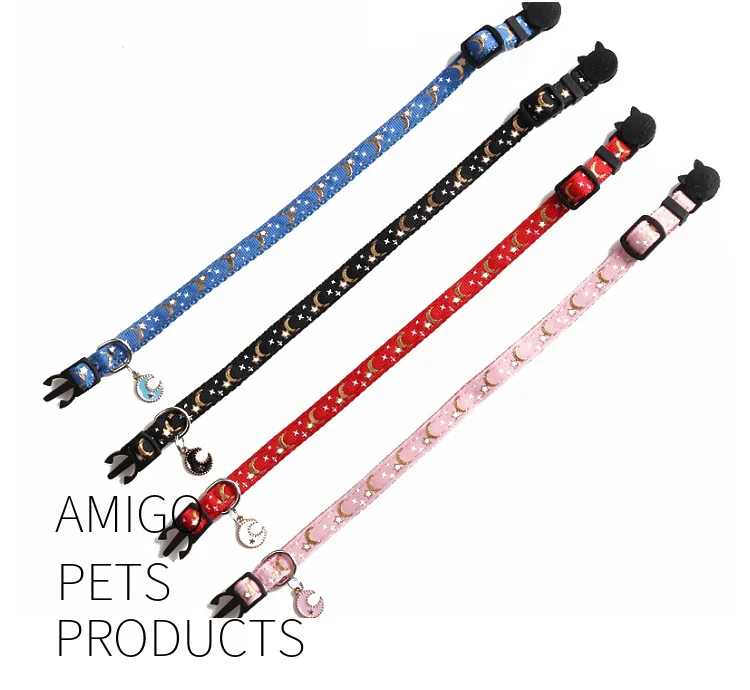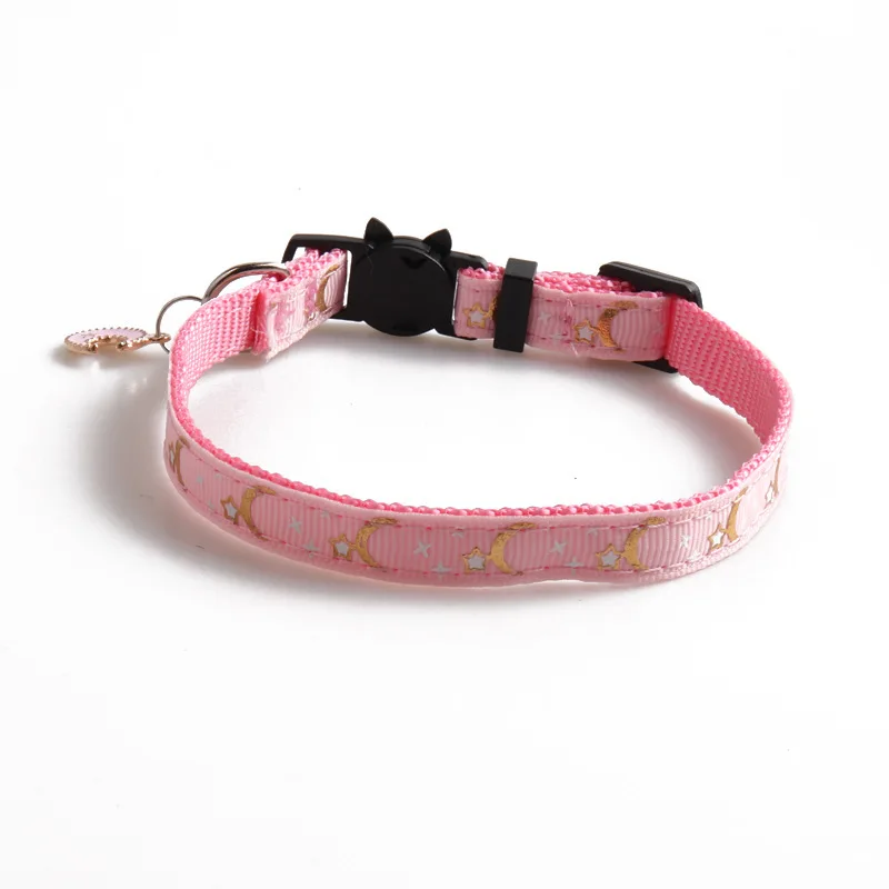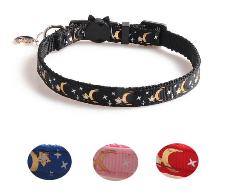 Милый ошейник для кошек, съемный ошейник для кошек со звездами и луной, регулируемый безопасный ошейник для котенка, украшение для ювелирных изделий