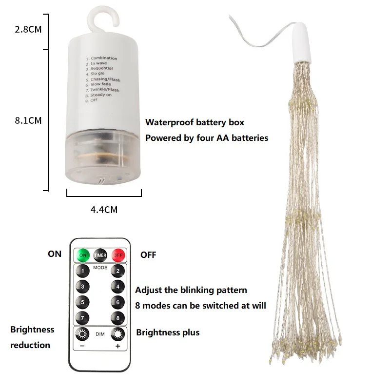 198 светодиодов пульт дистанционного управления Водонепроницаемый Одуванчик фейерверк светодиодный медный провод полоса струнный светильник s для свадебного декора светодиодный Сказочный светильник s Рождественский светильник