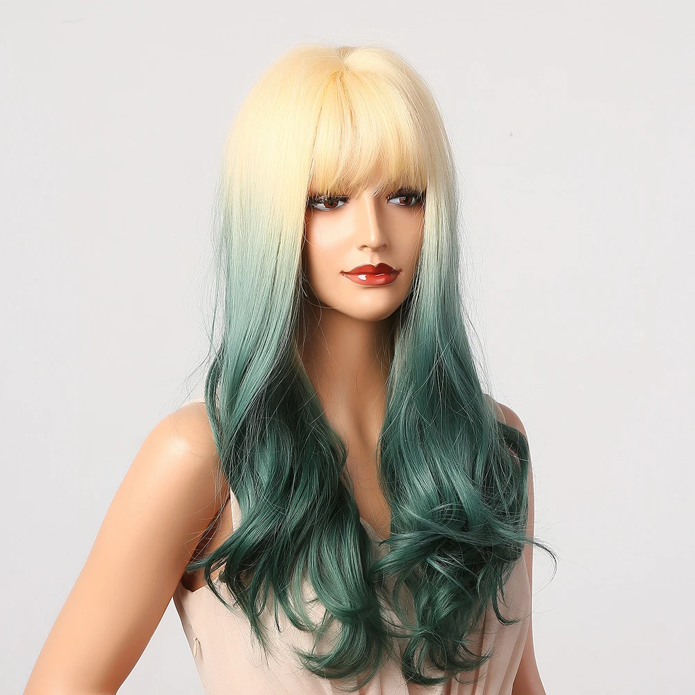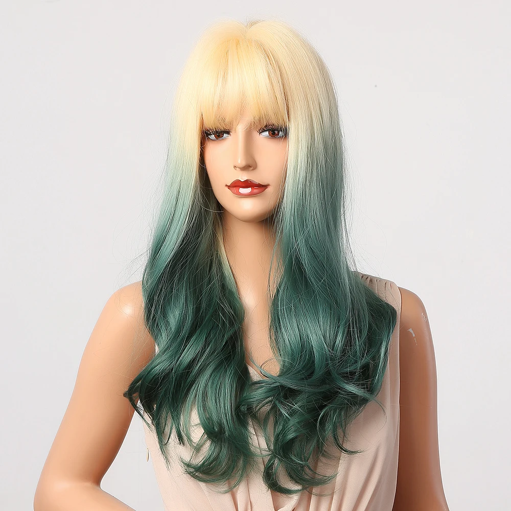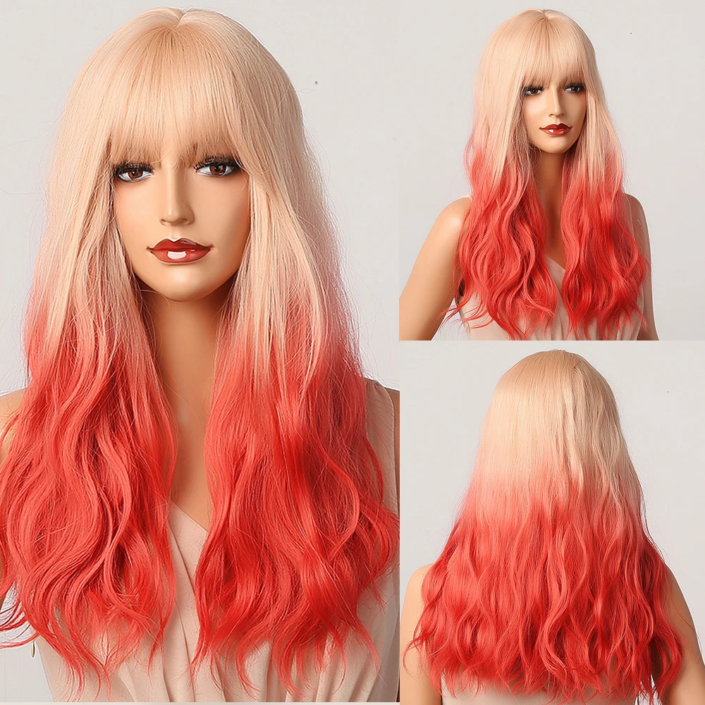 Парики из длинных синтетических волос с эффектом омбре, с челкой