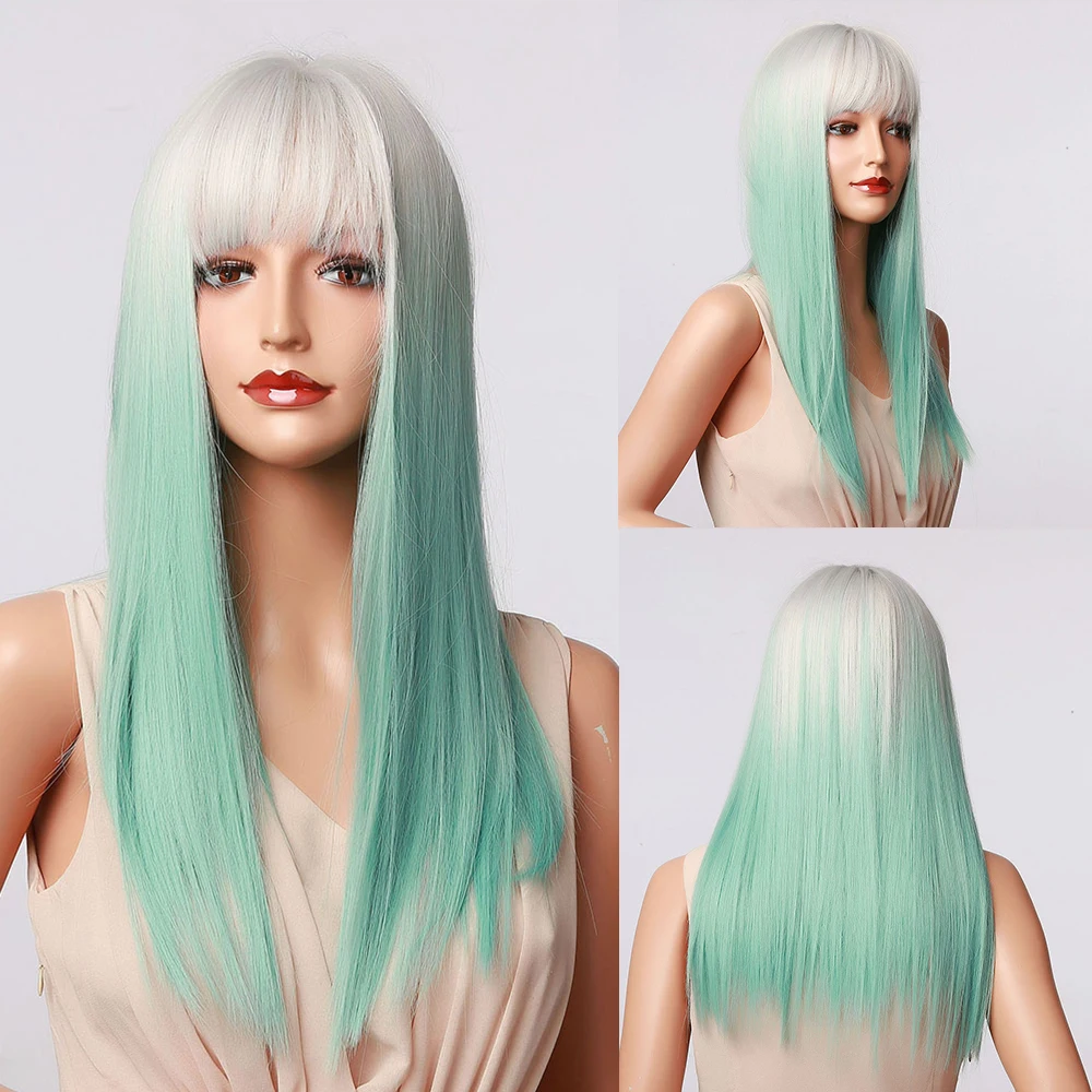 Женские Длинные прямые синтетические парики с челкой, с эффектом омбре