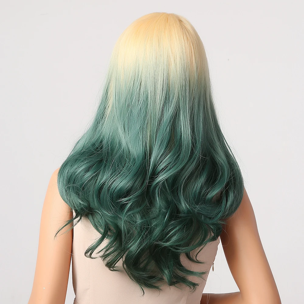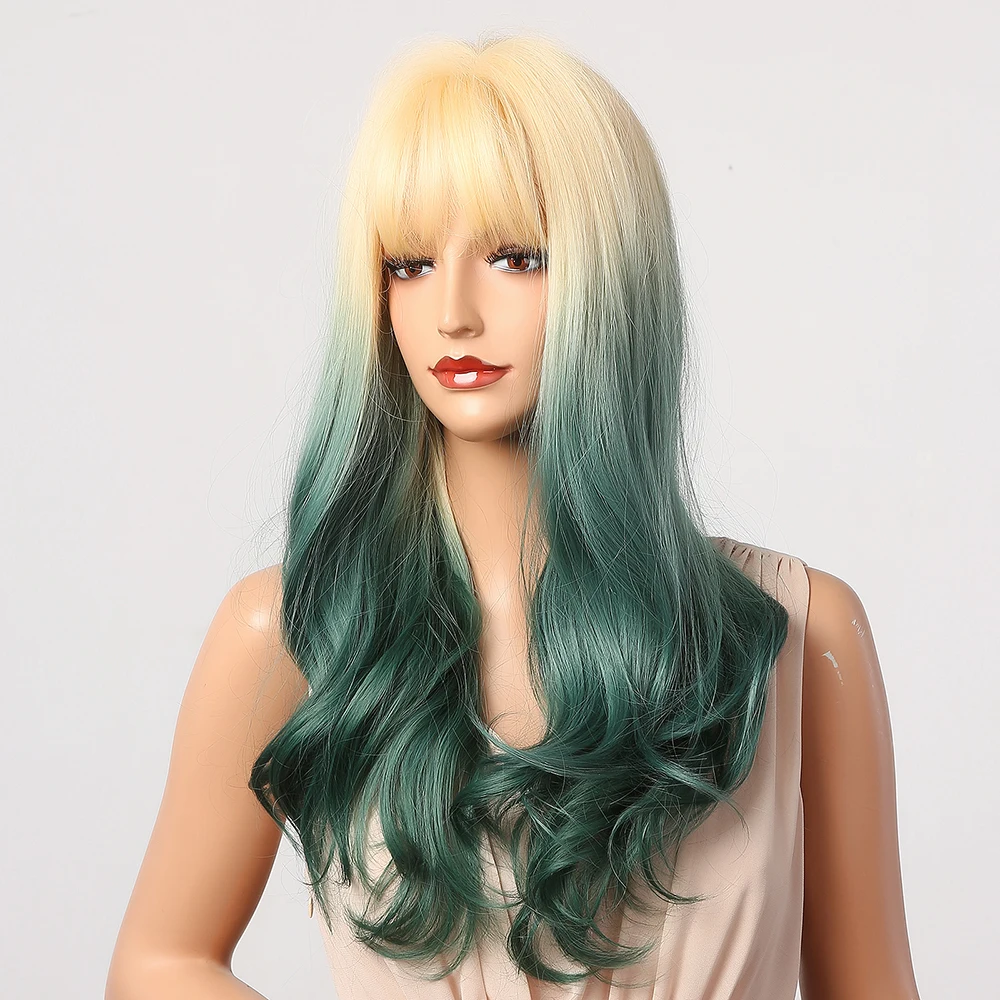 Длинные парики HENRY MARGU, темно-зеленые парики с Омбре, Длинные Синтетические парики с челкой, повседневные натуральные термостойкие парики для женщин