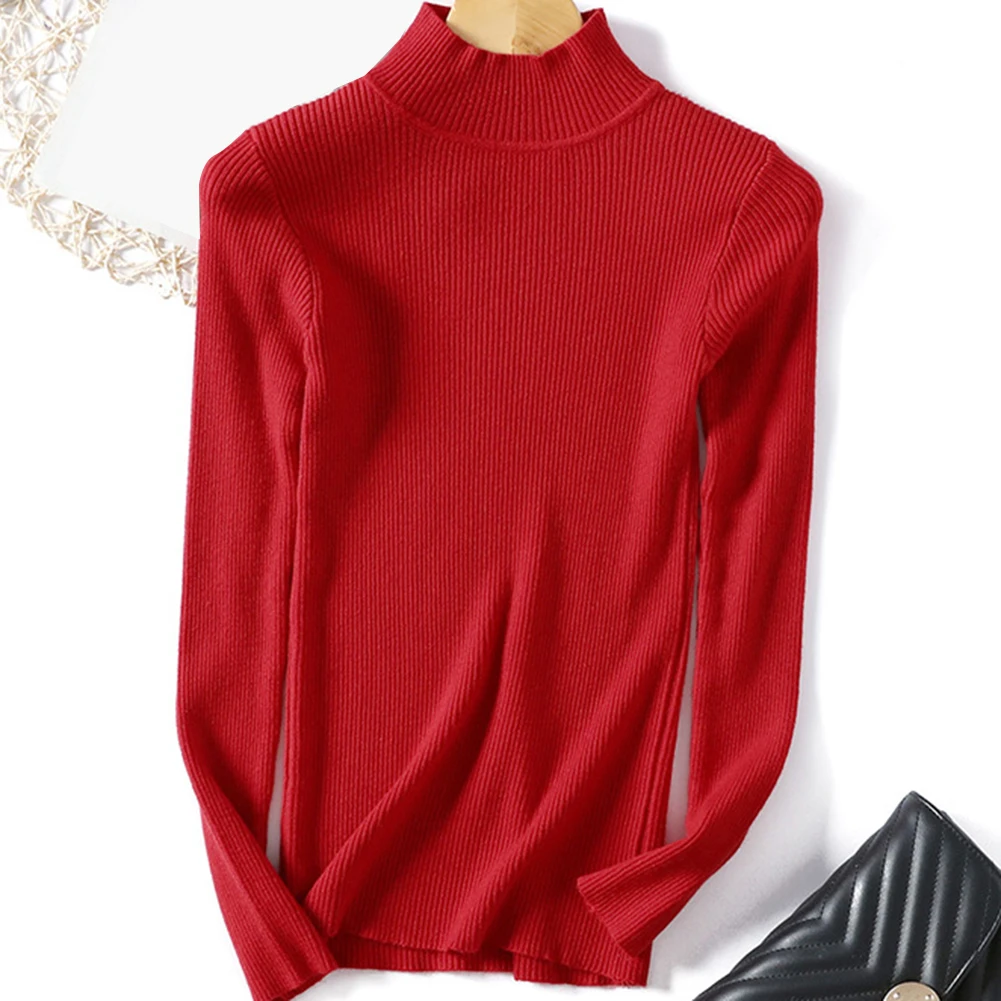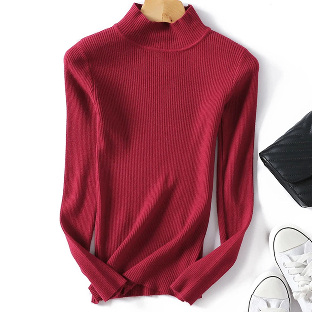 Свитер осенне-зимние женские топы Облегающая водолазка Топы трикотажные эластичные Новые Топы с высоким воротником пуловер