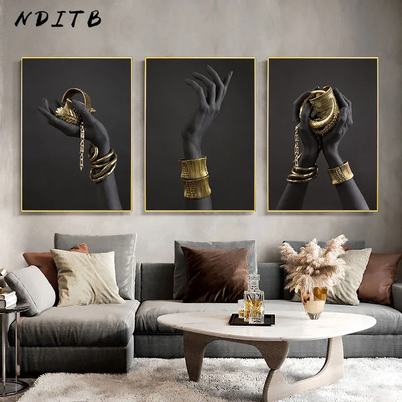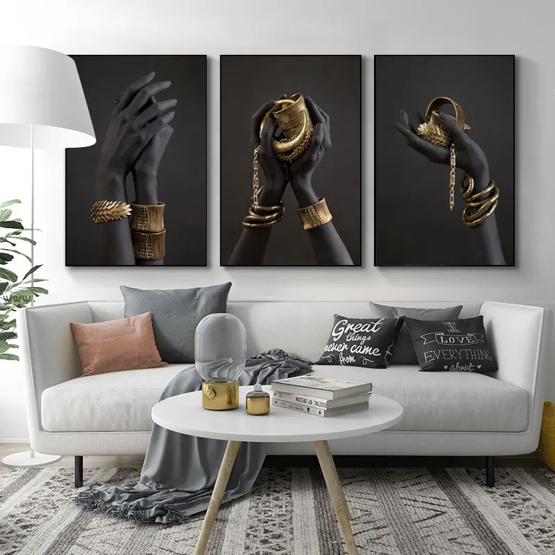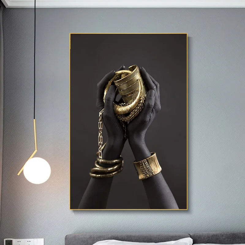 Африканская золотая темная кожа, Женская ручная абстрактная живопись, Модный женский постер, холст, принт, настенное искусство, картина, Современное украшение для дома
