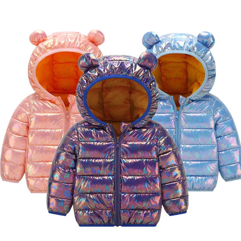Куртка для девочек, зимняя, яркая, легкая, однотонная, с капюшоном, 2020, От 1 до 6 лет