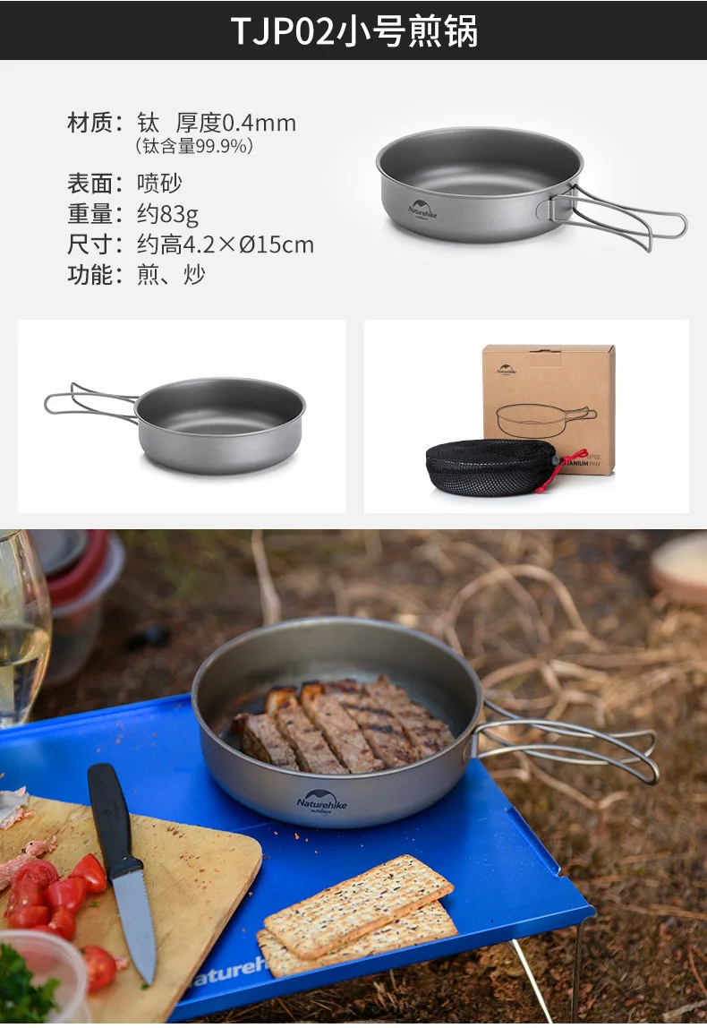 Походная посуда Naturehike, титановая сковорода, сверхлегкая, 83-116 г, сковорода 0,8-л, оборудование для путешествий, пикника