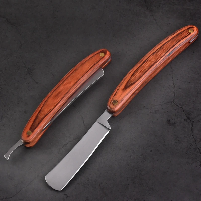 Старинный стальной парикмахерский нож с прямым лезвием, складной, инструменты для удаления волос, деревянная ручка