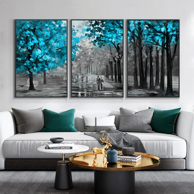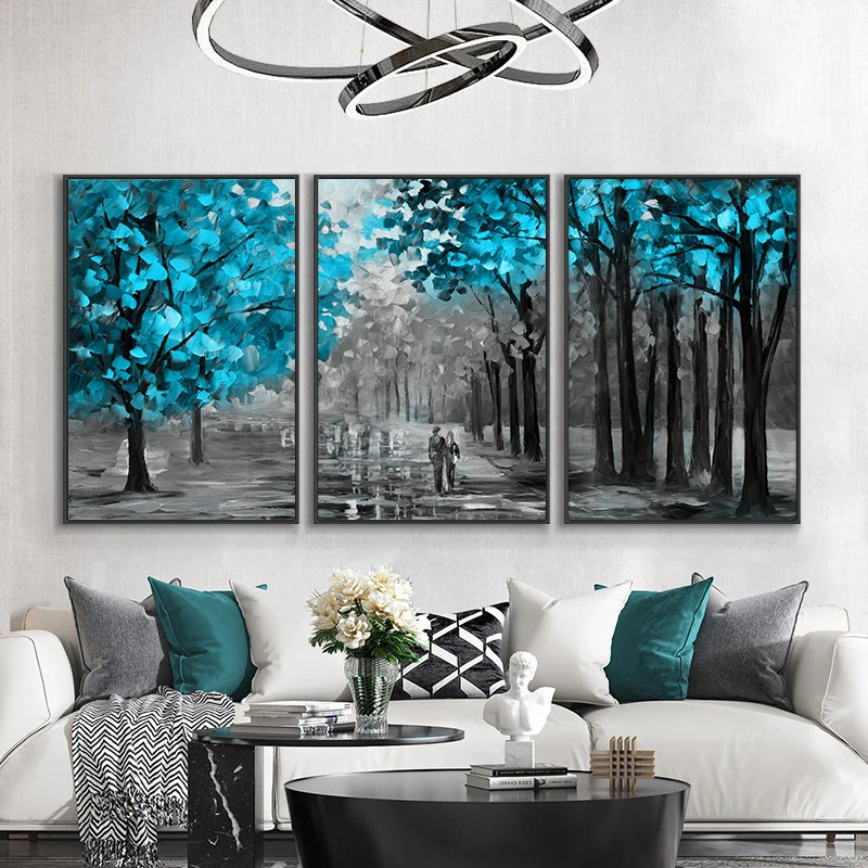 Современное абстрактное искусство, синие деревья на холсте, печать,...