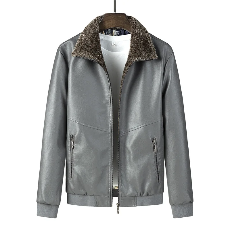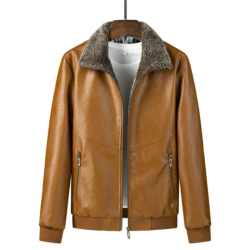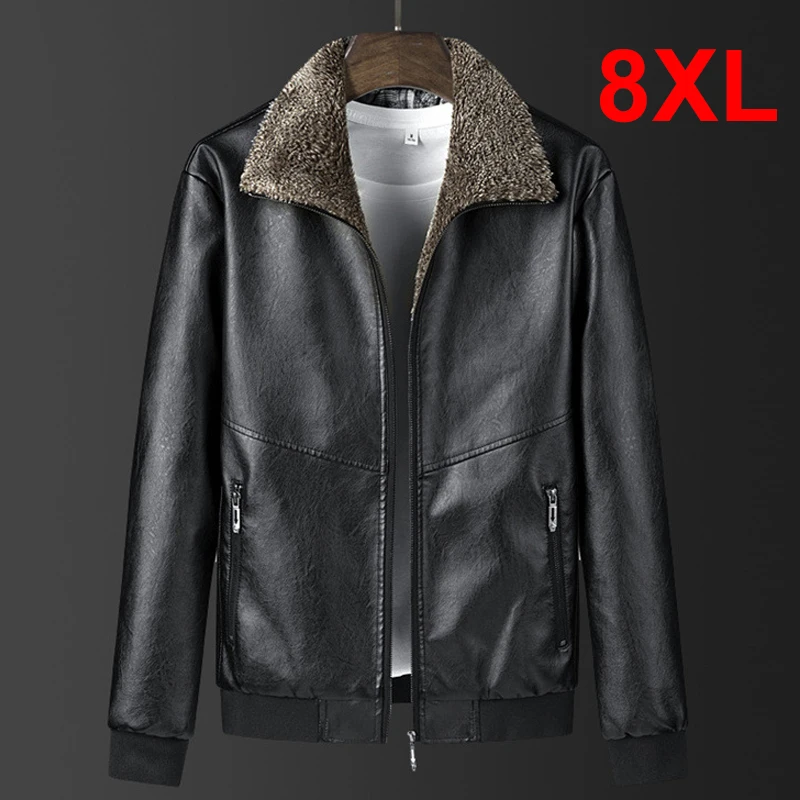 Куртка мужская кожаная, с меховым воротником, 8XL, размера плюс, мужская куртка из ПУ, теплая, повседневная, большого размера, 7XL, 8XL, HX513, зима-осень