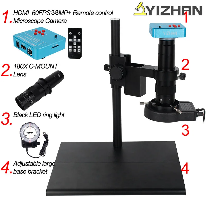 38MP светодиодный светильник для ремонта телефона паяльный микроскоп HD USB HDMI VGA TF большая стойка для верстака монокулярная цифровая камера 18X объектив