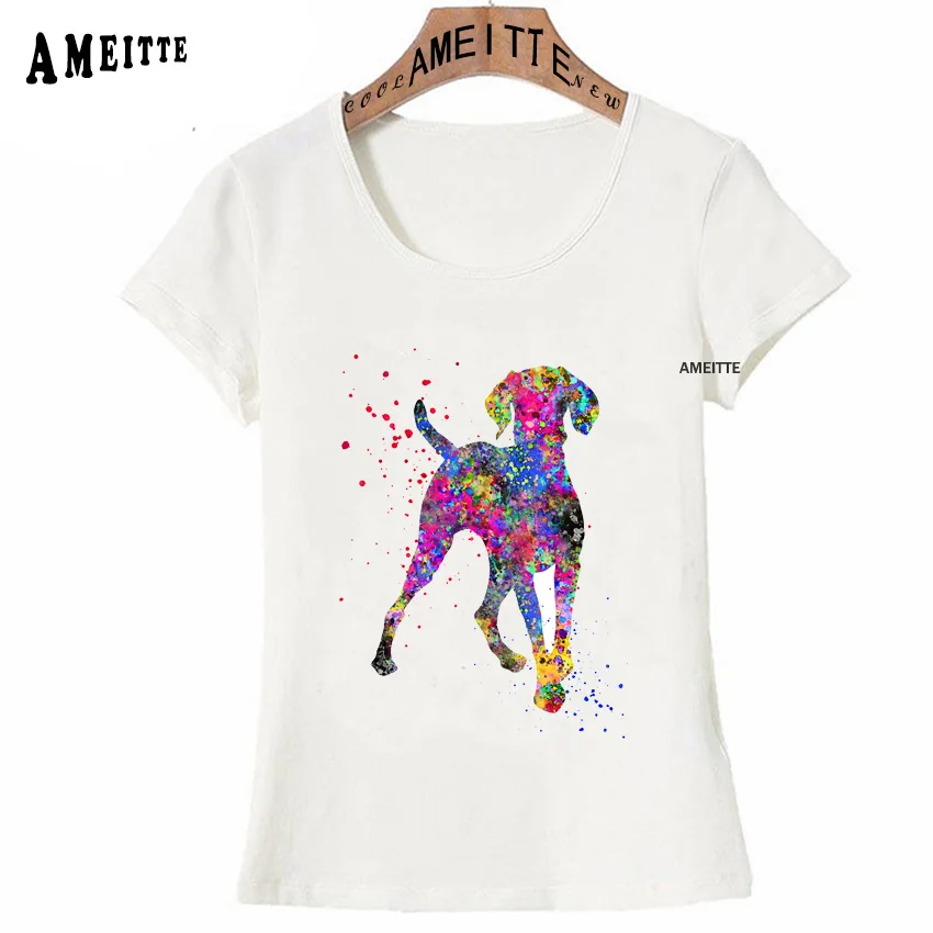 Умный венгерский собака Vizsla акварельным принтом летняя футболка для женщин с коротким рукавом, милые повседневные топы забавные мадьярский дизайн футболки для девочек