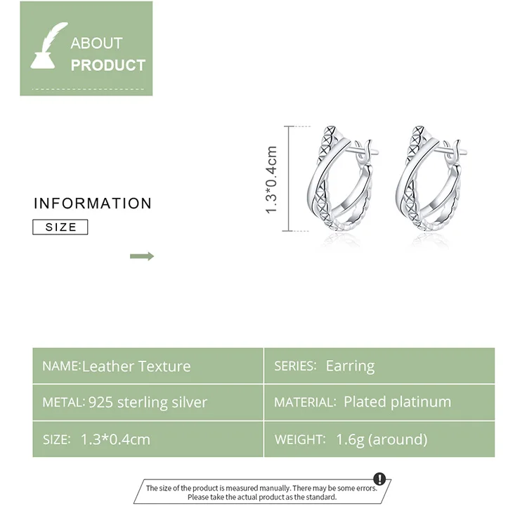 Материал: S925 + Платина с покрытием Размер: 1,3*0,4 см Описание: Простой линейный дизайн в сочетании с текстурой кожи подчеркивает индивидуальность Вашего уха.