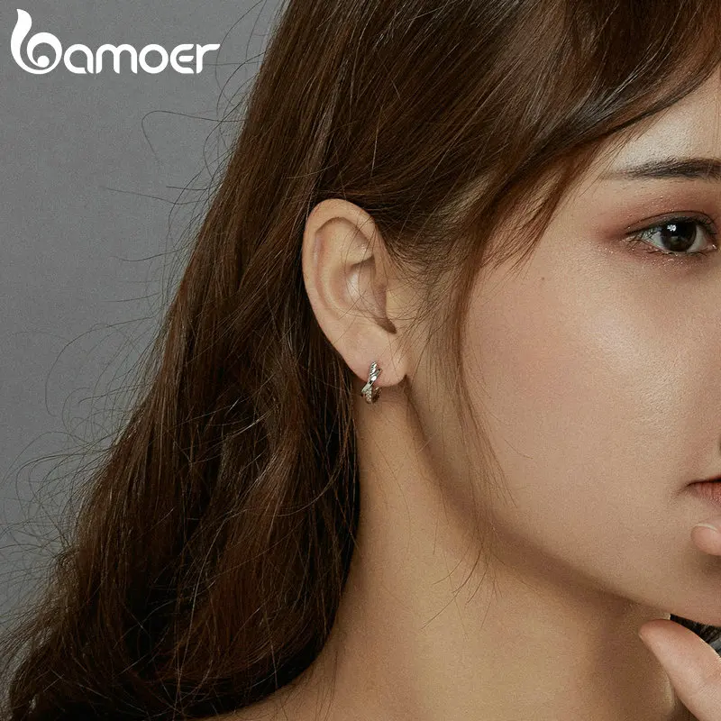 Серьги bamoer Huggie, покрытые платиной, 925 пробы, серебряные серь...