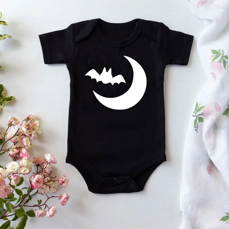Детский комбинезон с коротким рукавом Little Boo, черный хлопковый комбинезон на Хэллоуин, для мальчиков и девочек 0-18 месяцев