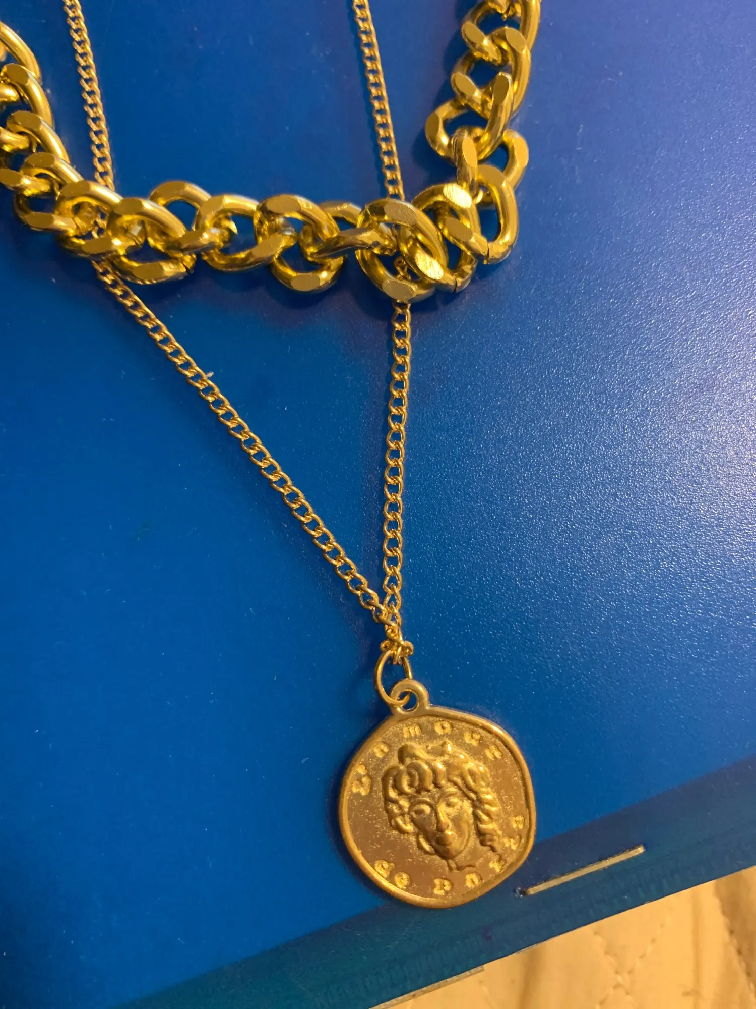 Хорошая подвеска но....мне не очень подошла. Крупная цепочка как чокер, почти в притык. Я думаю что если добавить ещё немного цепочки то всё будет норм. Монетка на цепочке красивая. Рисунок с двух сторон.