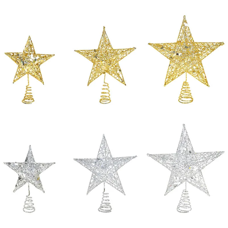 Золотой Серебряный блеск Рождественская елка Top Star Новогоднее украшение для дома Изысканный железный художественный орнамент Xmas Party Новогодний декор