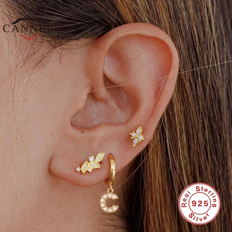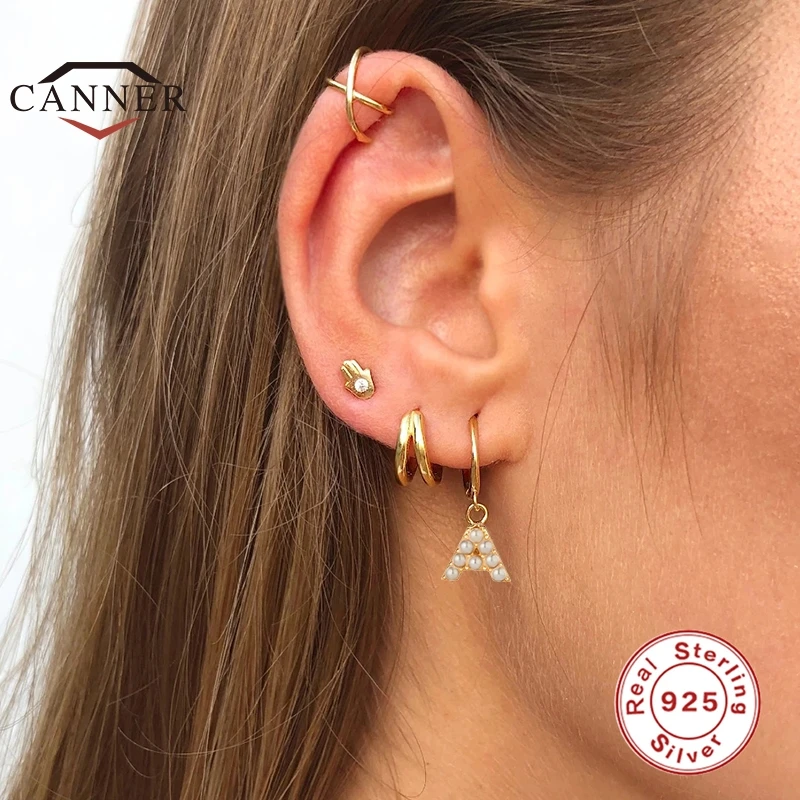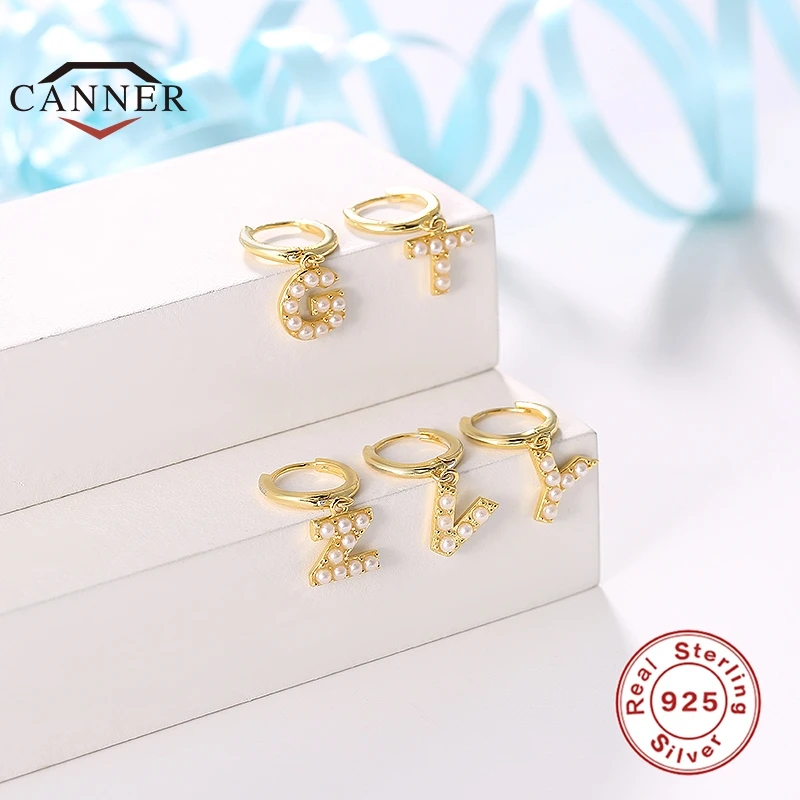 Женские серьги-кольца CANNER из настоящего стерлингового серебра 925 пробы с 26 буквами, серьги для пирсинга, ювелирные изделия