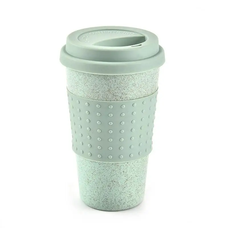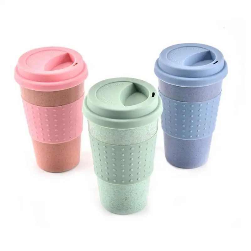 Дорожная пластиковая кружка с крышкой, портативная кофейная чашка из пшеничной соломы для путешествий, кемпинга, пешего туризма, пикника